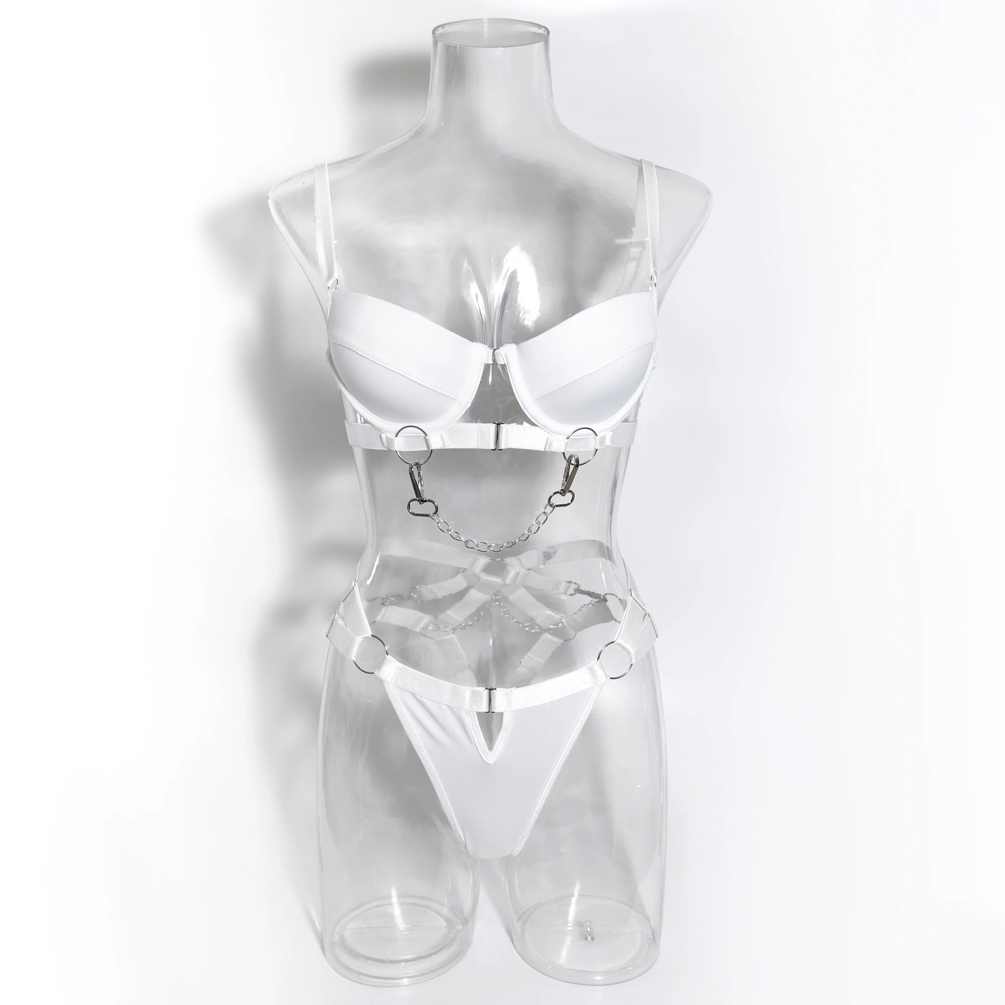 Crotchless y Lingerie Luxury Push Up Bra Fancy Underwear Uncensored Set Women 2 Piece White Intimate Bilizna Outfit