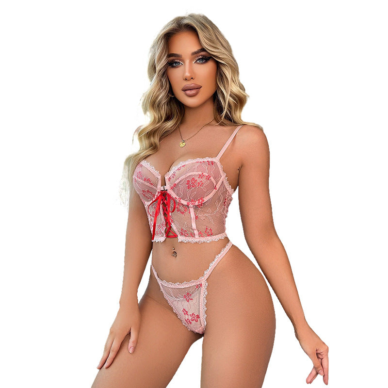 Direct Sexy Lingerie Hollow Out Cutout Out Strap See Through Lace Sexy Two Piece Suit