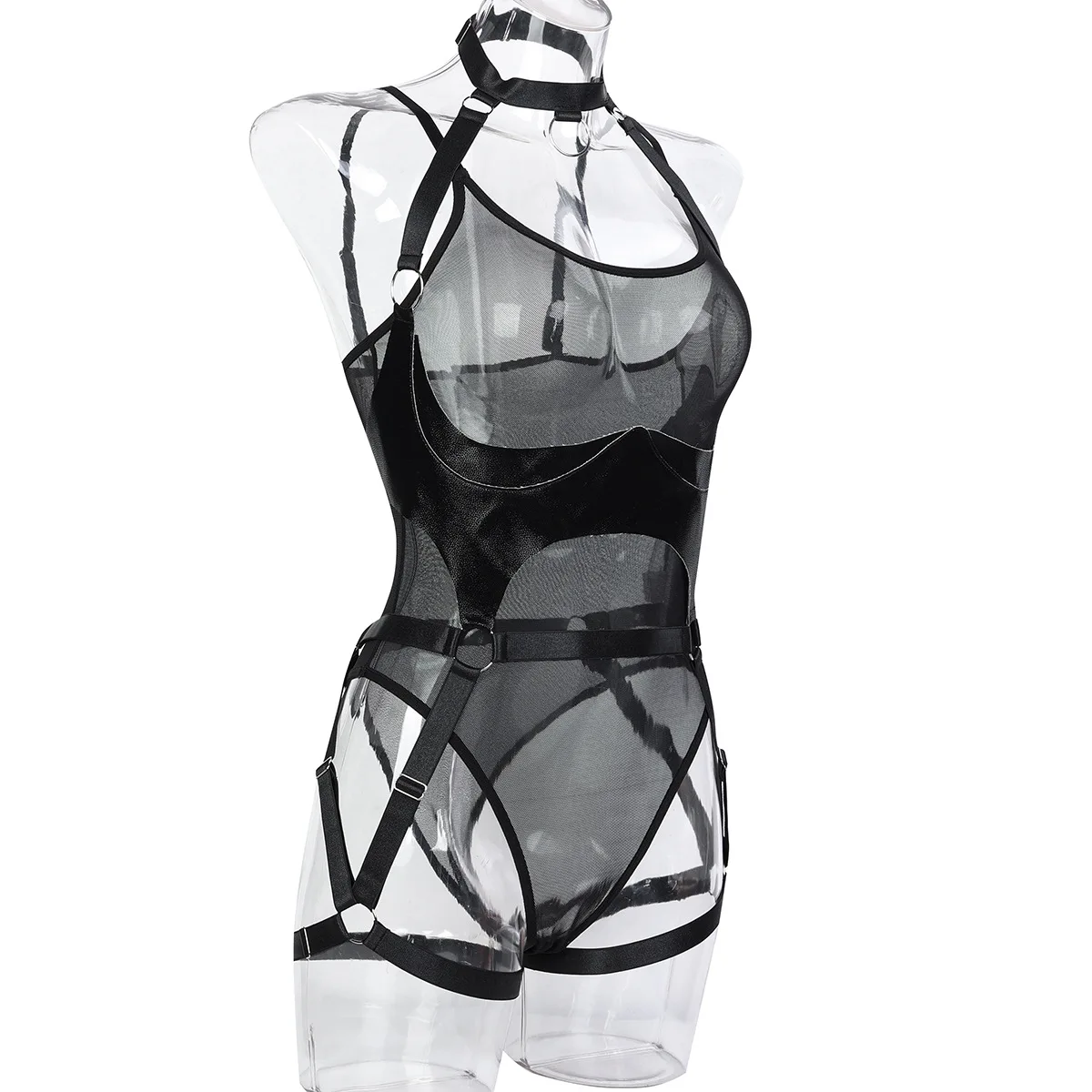 Ellolace Bdsm Lingerie Mesh Bodysuit With Leather Halter Harness Bondage Porn Fantasy Clothing Naked Babydoll Erotic Costume 18