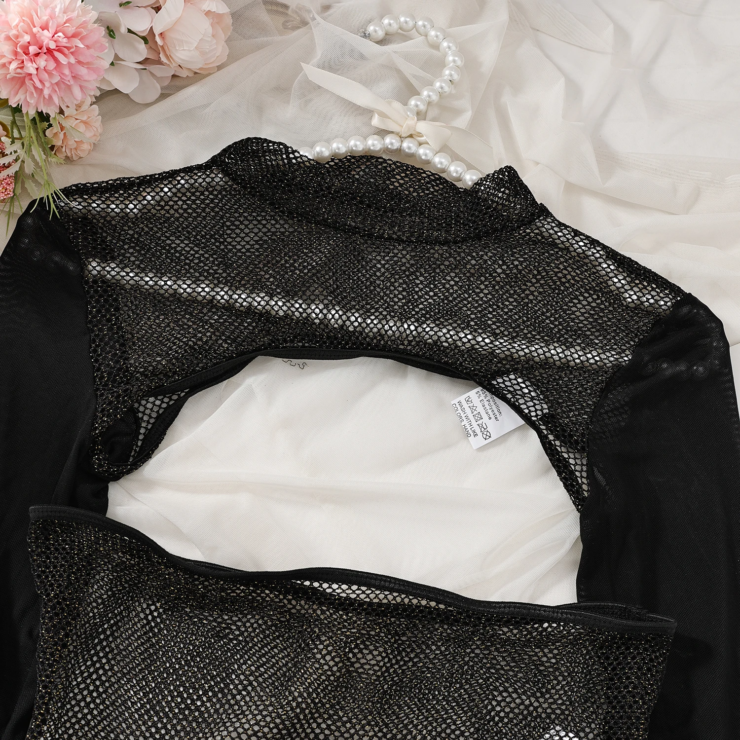 Ellolace Bound Hand Erotic Babydoll Porn Mesh Body With Long Sleeve Crop Tops Open Crotch Tights Transparent Onlyfans Sexy Set