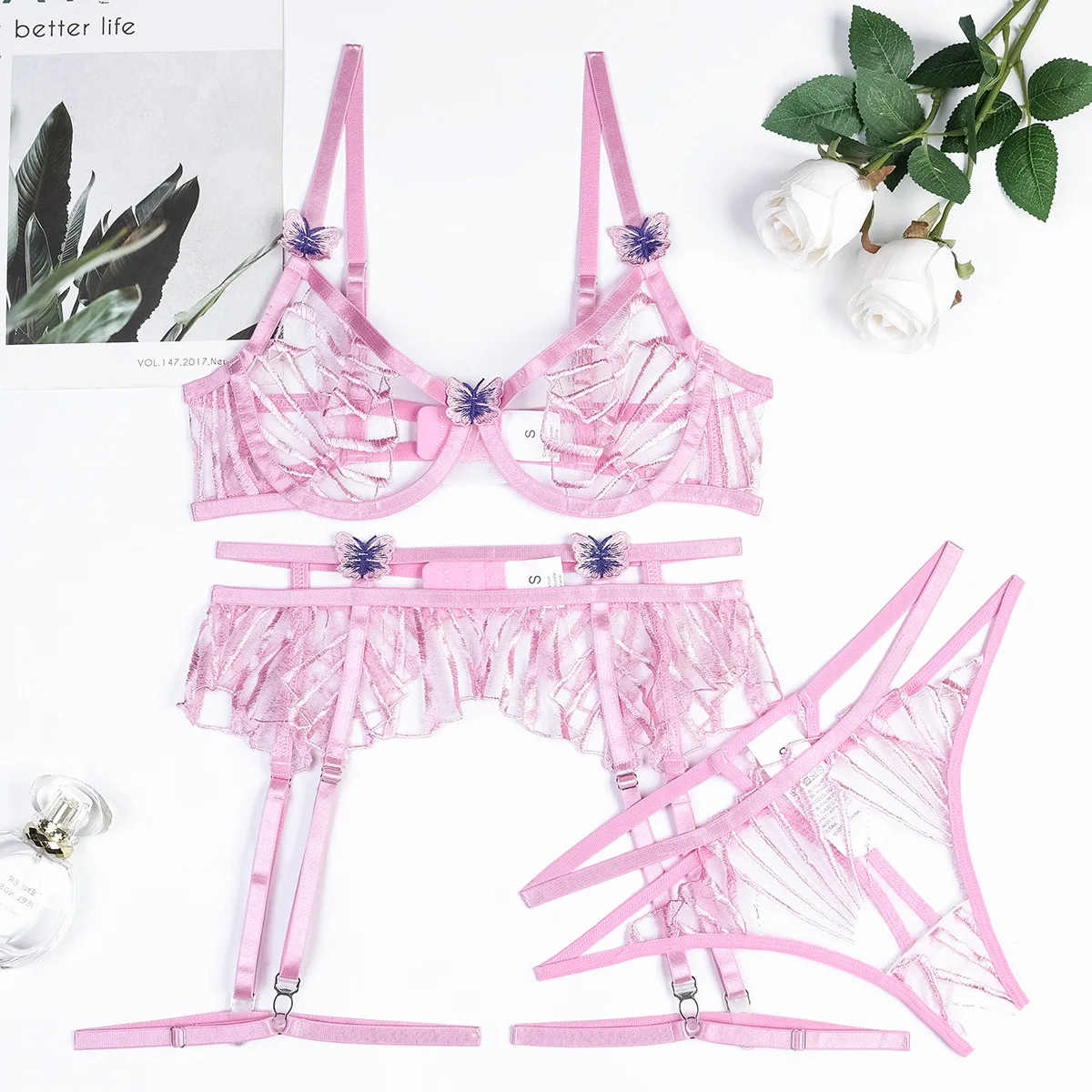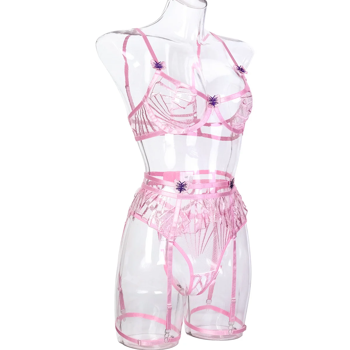 Ellolace Bra Cut Lingerie Lace Sexy Seductive Underwear Butterfly Luxury Thong Intimate Transparent Bra And Brazilian Outfits