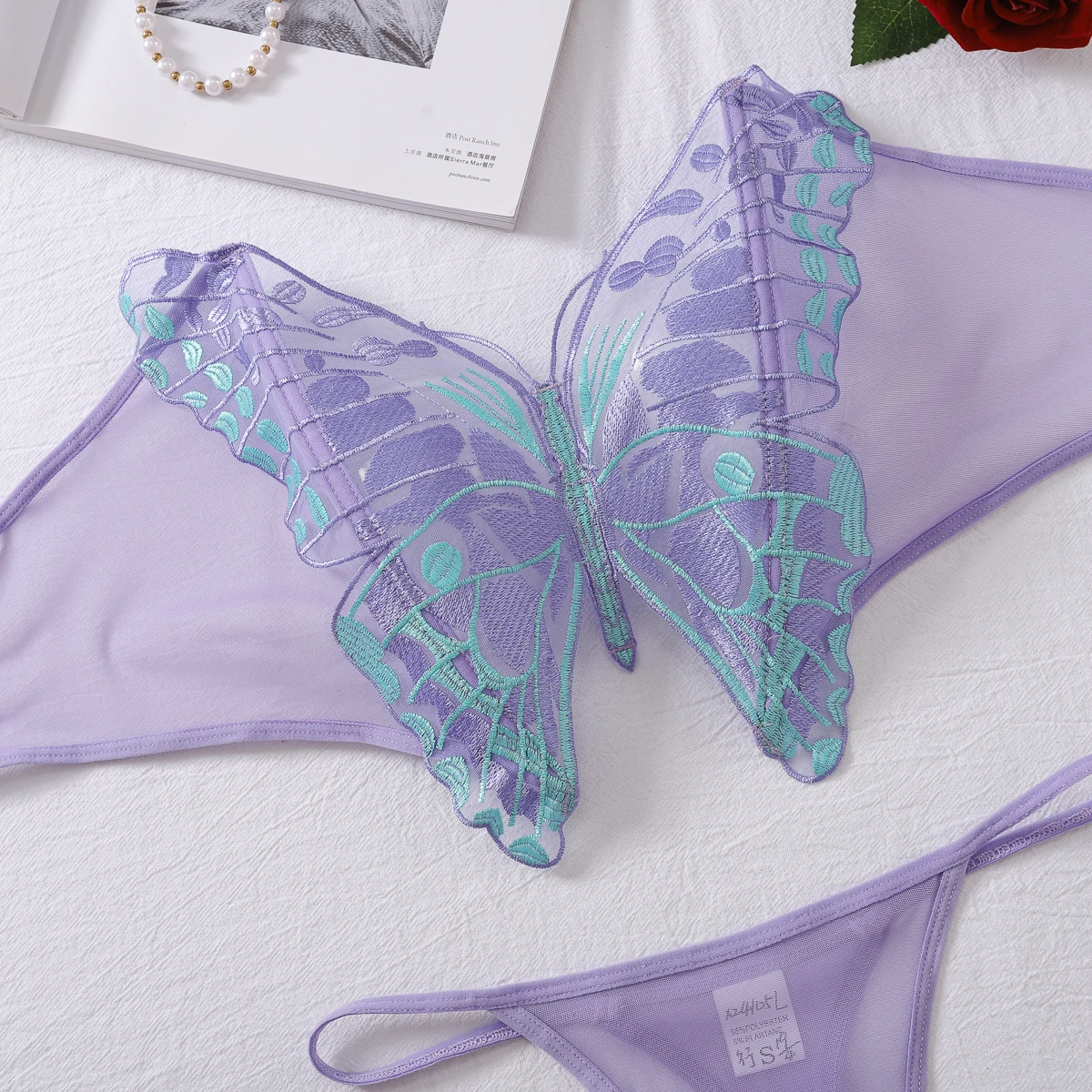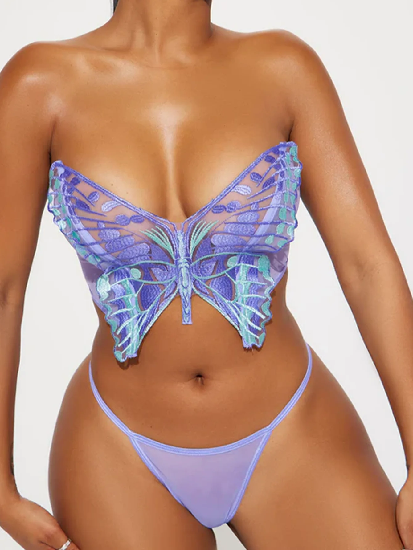 Ellolace Butterfly Onlyfans Kit Lingerie Fantasy Foul Underwear g-String Ensemble 2 Pieces Kinky Lace Exotic Bilizna Set