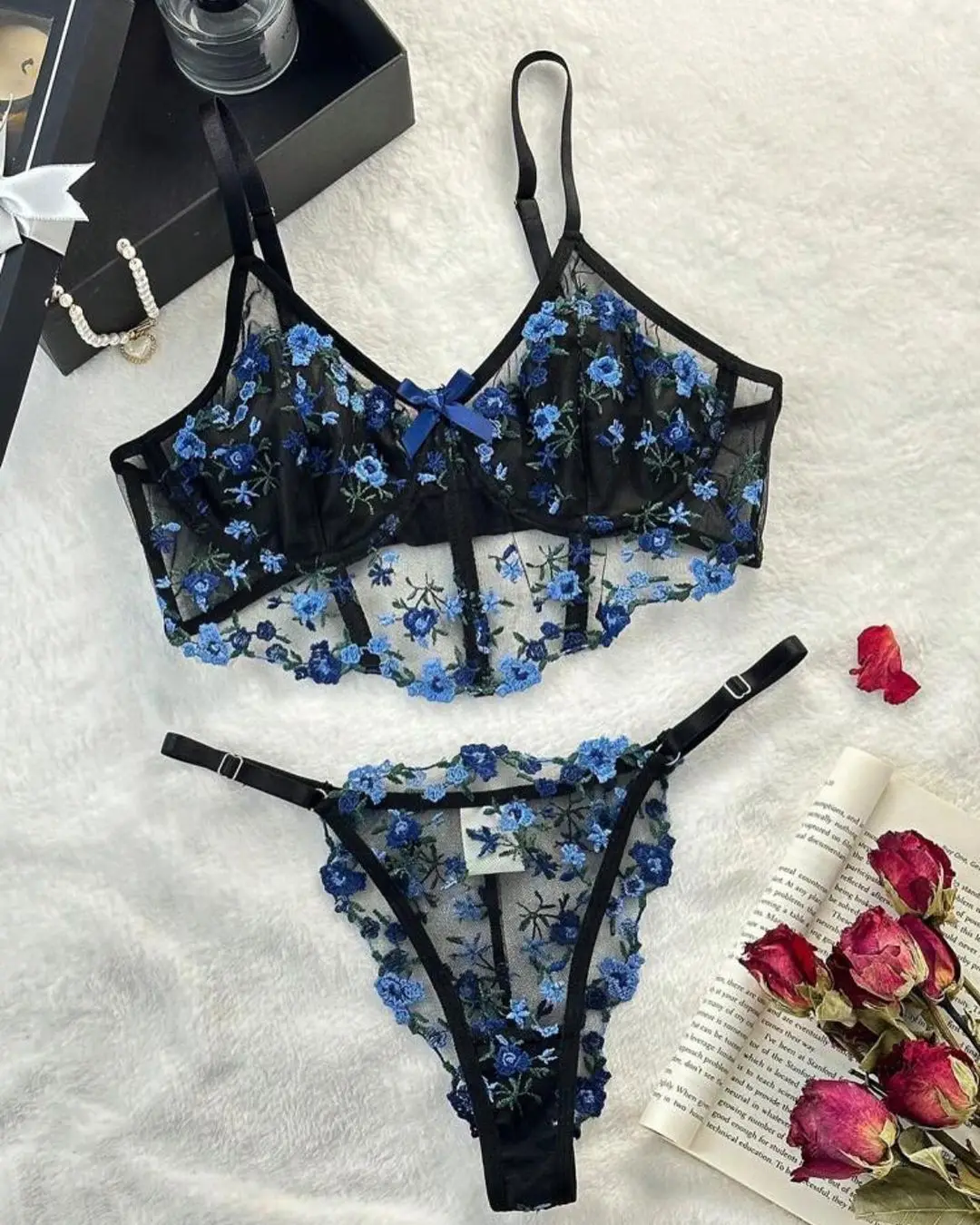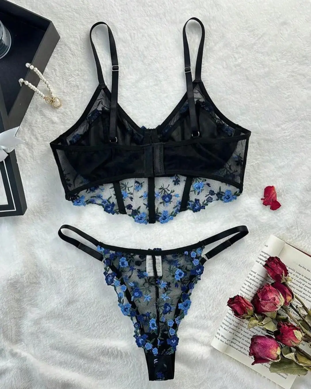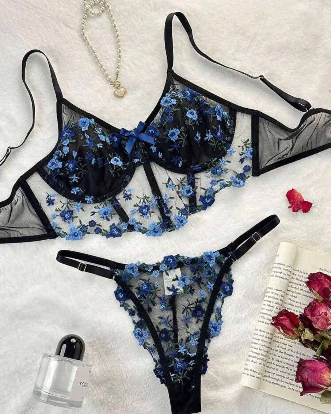 Ellolace Delicate French Underwear Fairy Floral Lingerie Sexy Lace Outfits See Through Exotic Sets Embroidery Romantic Set