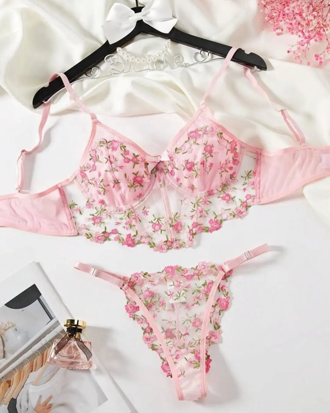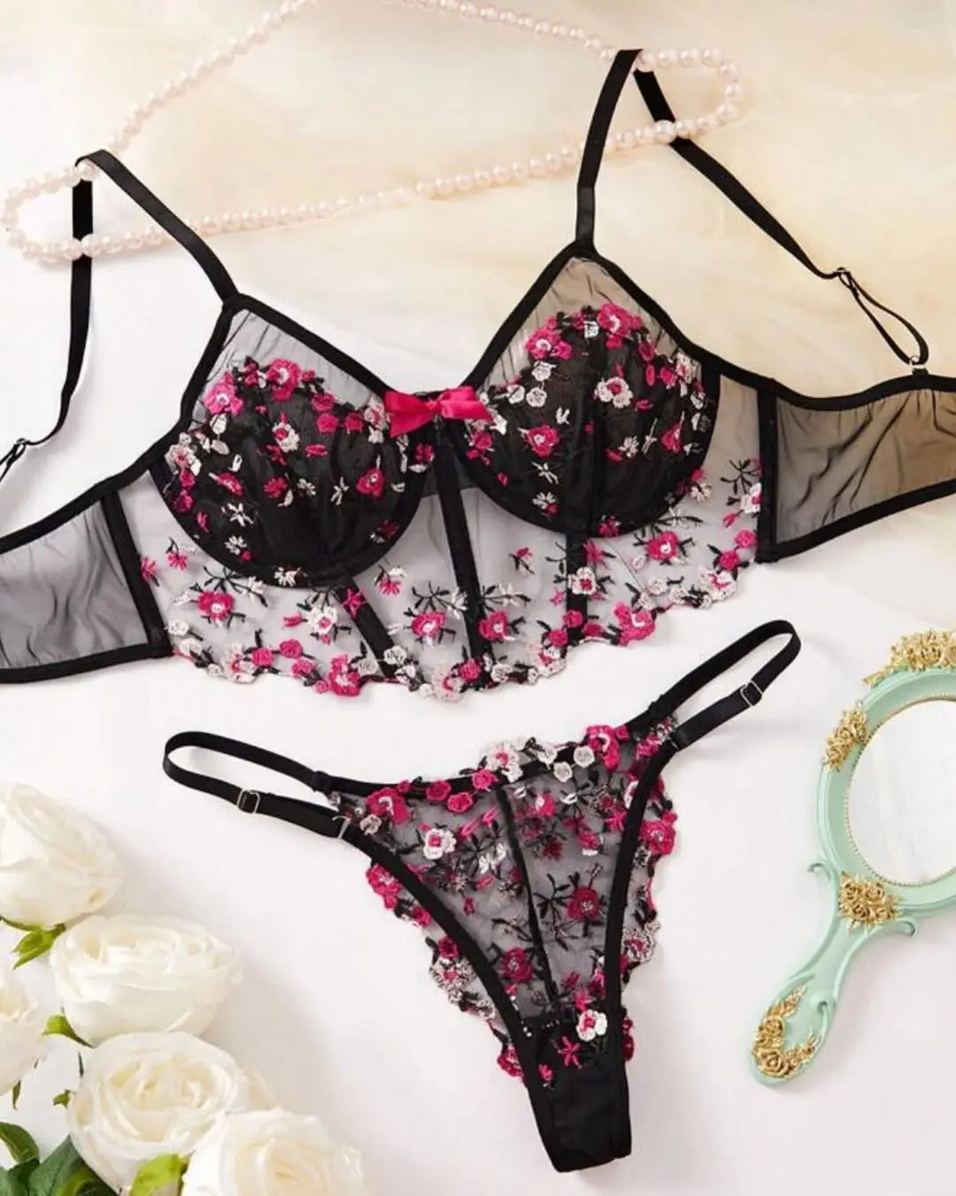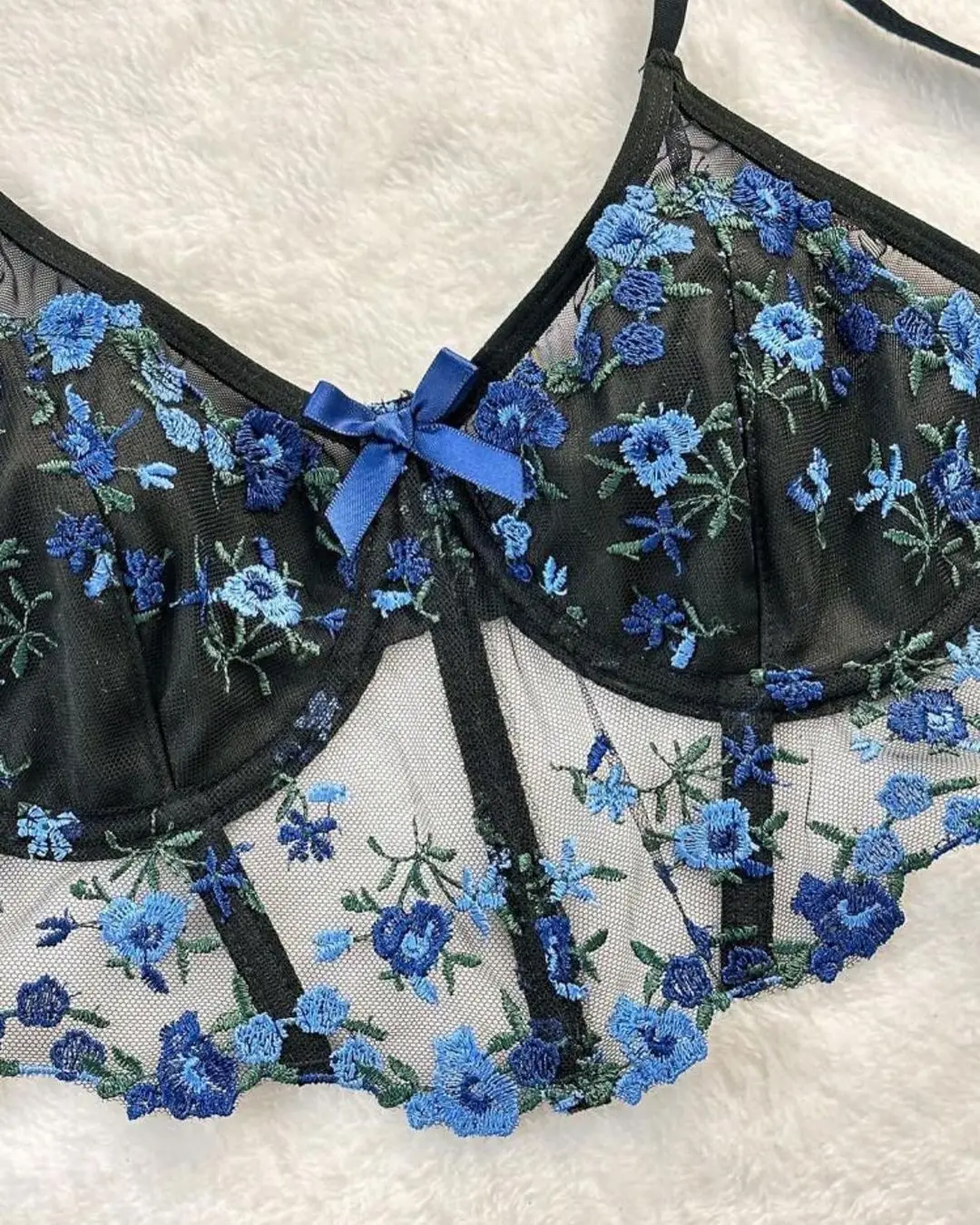 Ellolace Delicate French Underwear Fairy Floral Lingerie Sexy Lace Outfits See Through Exotic Sets Embroidery Romantic Set