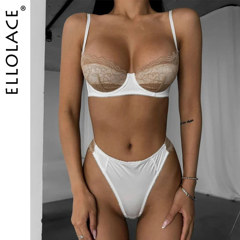 Ellolace Ensemble Lingerie Sexy Woman Push Up Lace Sexy Outfits See Through Romantic New Underwear Erotic Bilizna Onlyfans