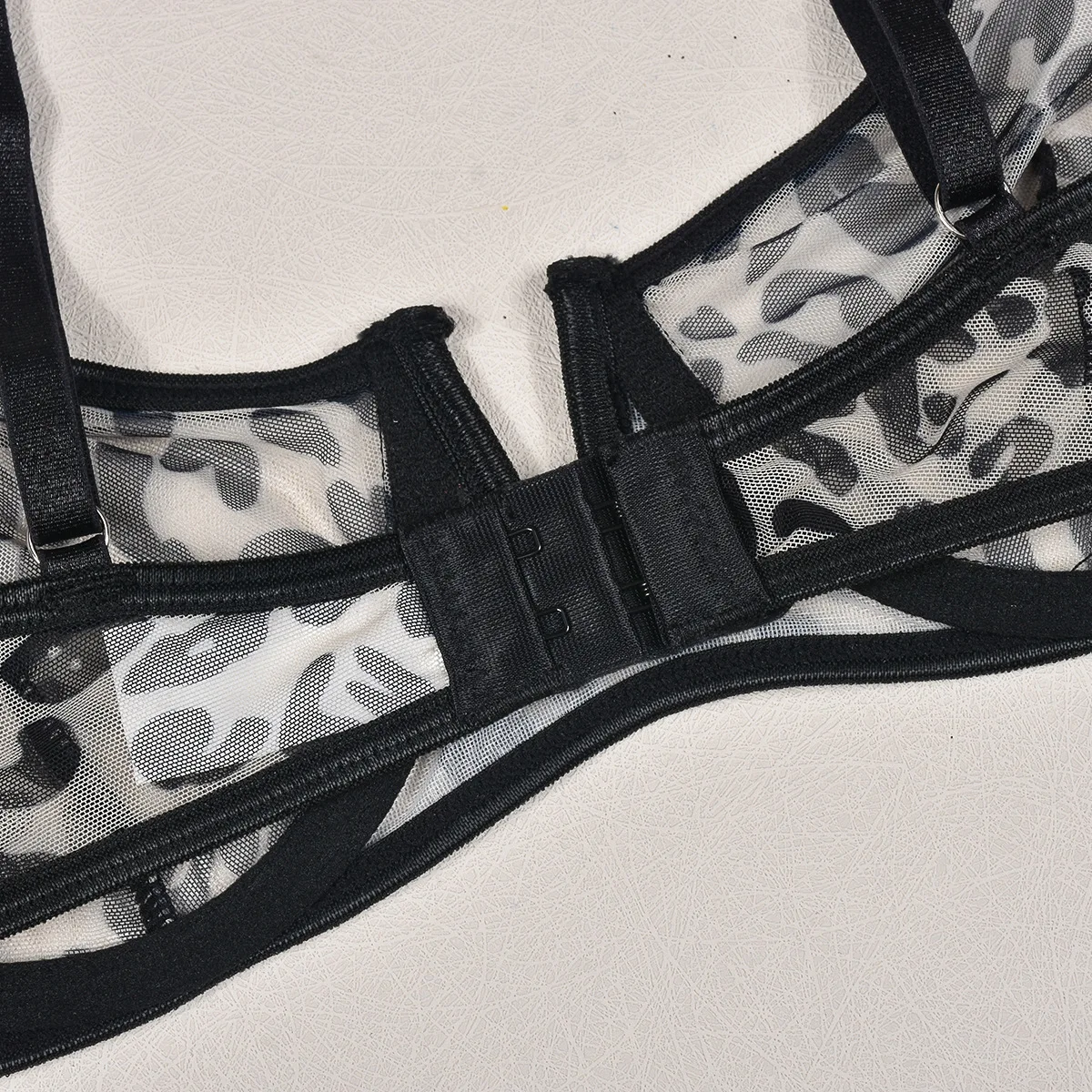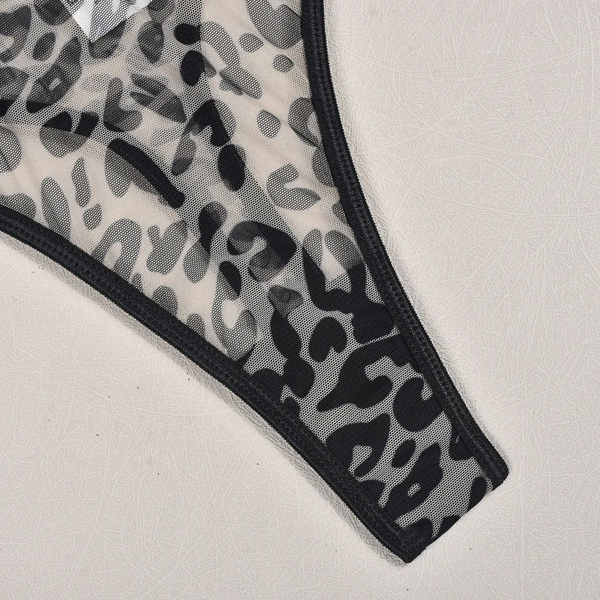Ellolace Erotic Leopard Lingerie Deep-V Sheer Lace Underwear Fancy Outfit See-Through Intimate Hot Sexy Fantasy Exotic Sets