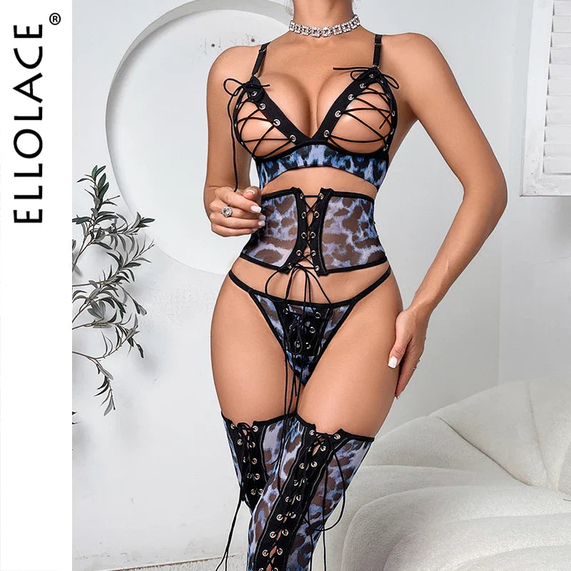 Ellolace Erotic Porn Leopard Lingerie Threads Perforated Underwear Women Fetish Naked Sissy Excited Sexy Hot Costume Uncensored