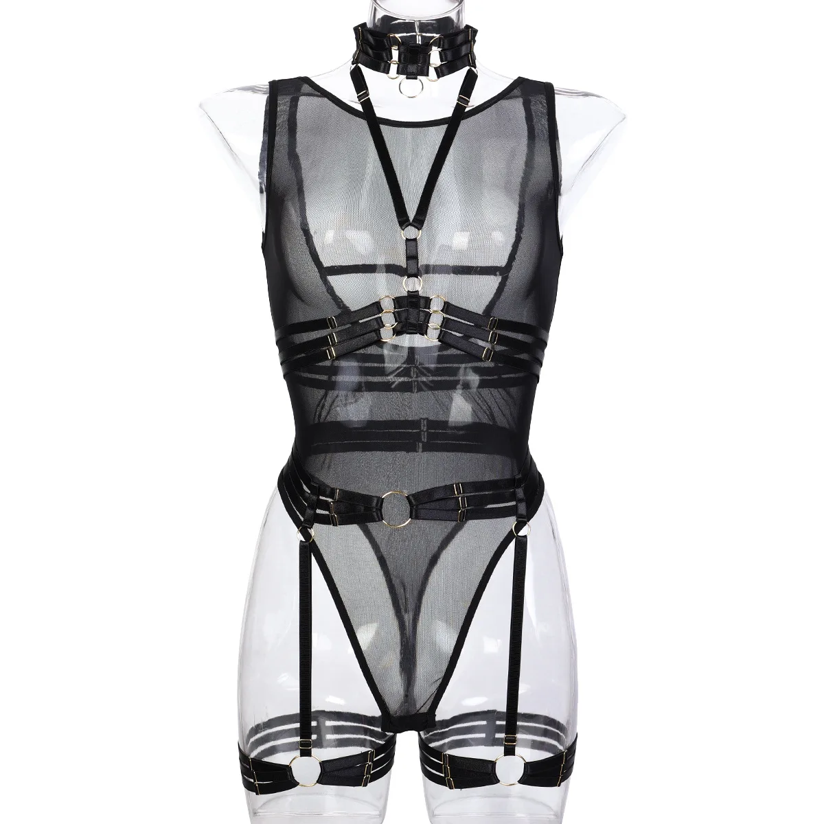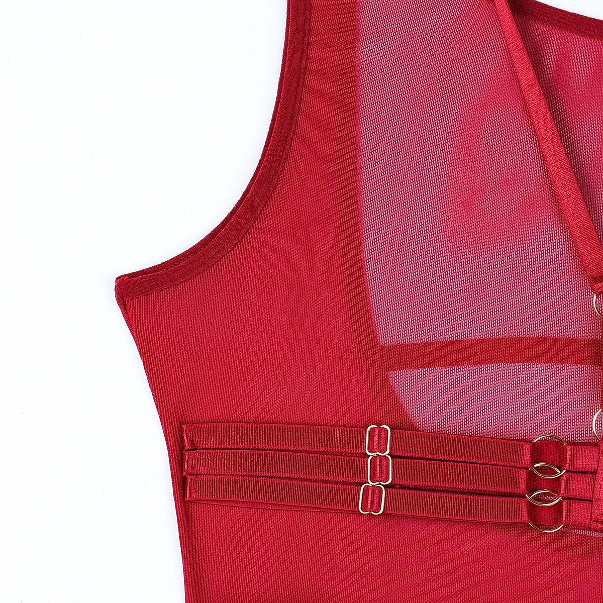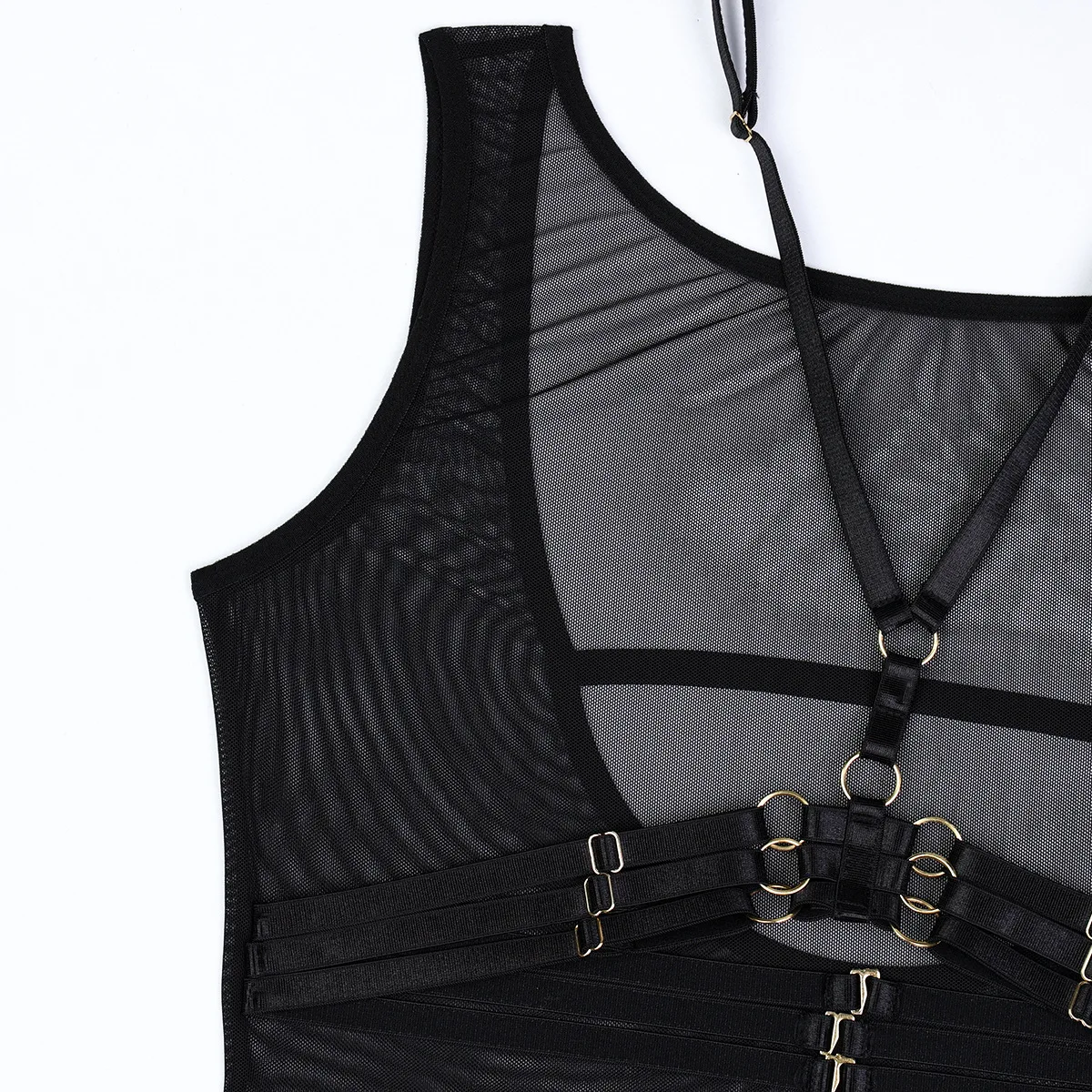 Ellolace Erotic Porn Lingerie Bodysuit Transparent Mesh Body With Garter See Through Crotchless Sex Suit Open Crotch Costume