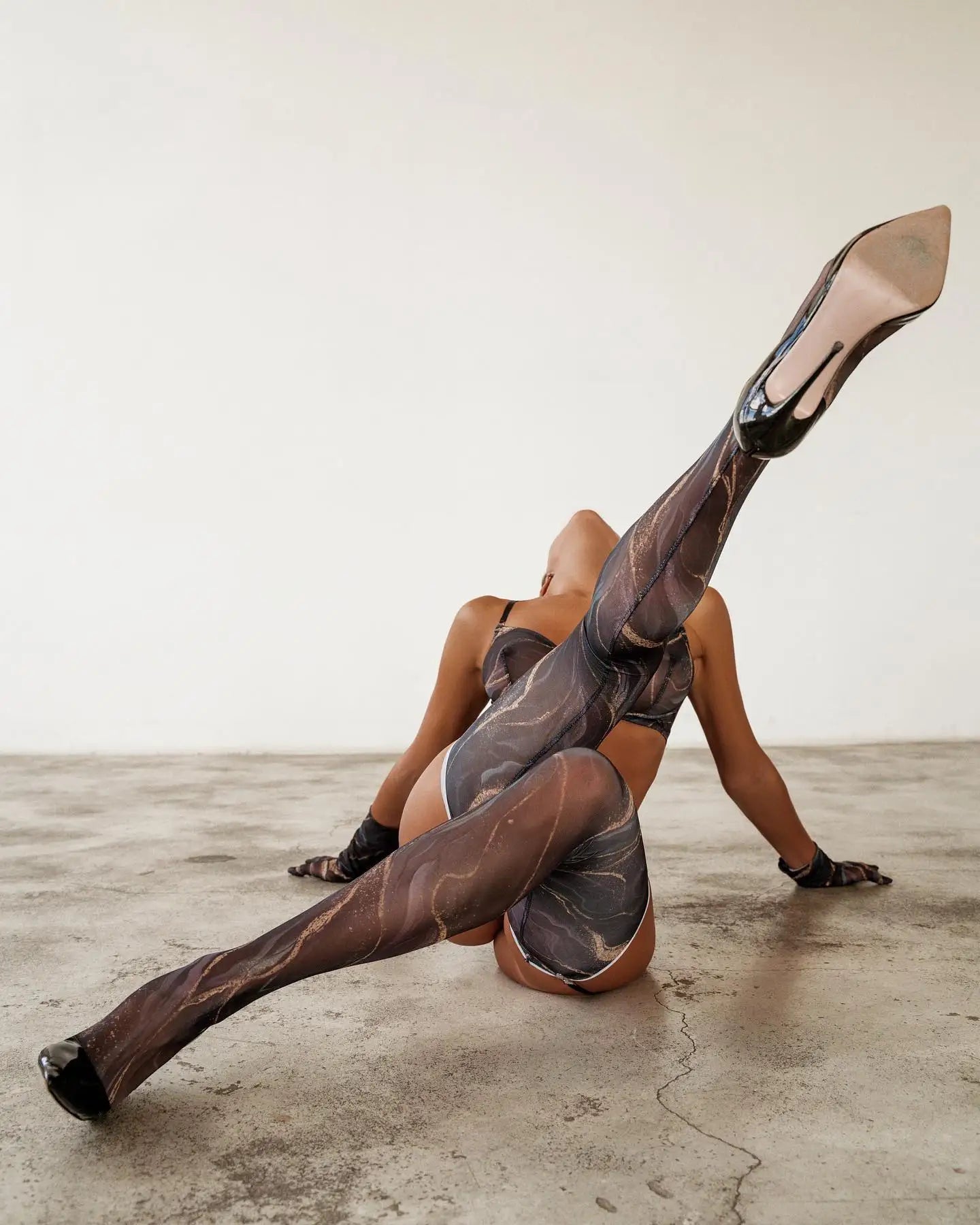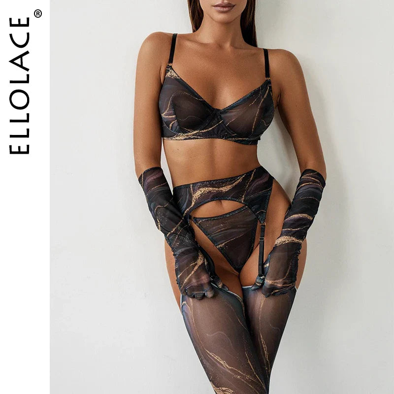 Ellolace Erotic Senual Lingerie Tie Dye Lace Underwear With Stocking Long Gloves See Through Bilizna Outfits Fancy Sensual Set