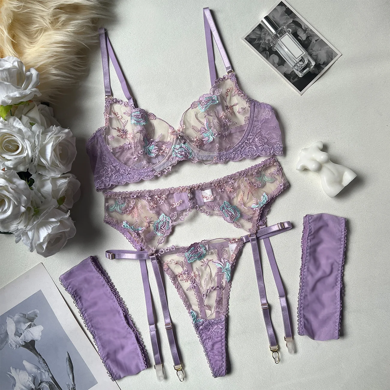 Ellolace Fairy Lingerie Sexy Onlyfans Kit Delicate Underwear Transparent Bra Sissy Erotic Outfits Fancy Lace Underwear 5-Piece