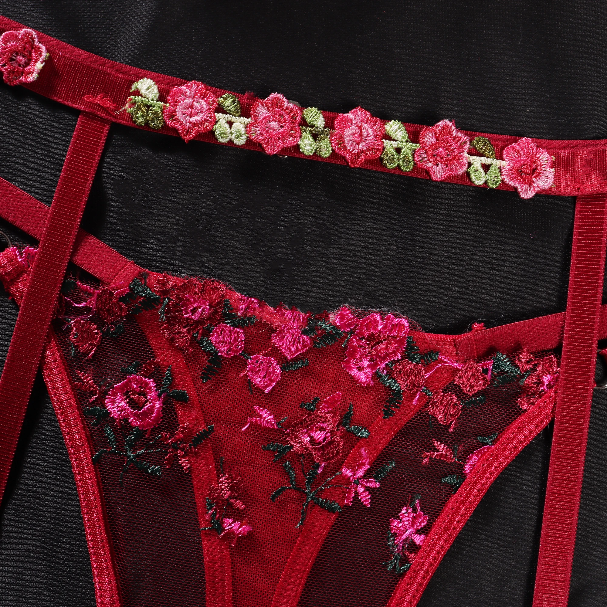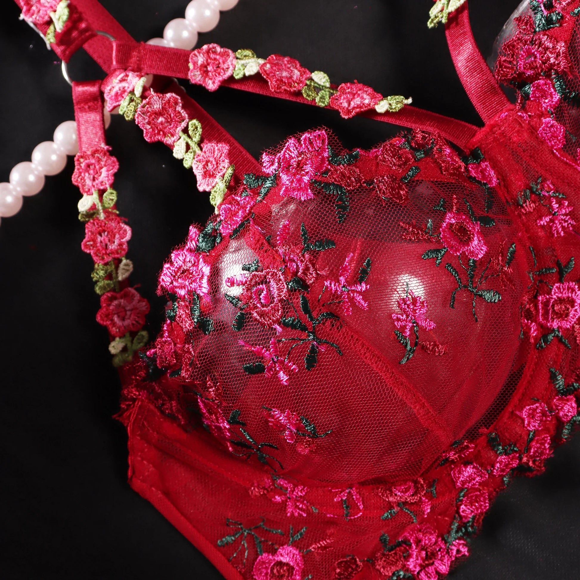 Ellolace Fancy Lingerie Lace Delicate Underwear Ensemble Garter Belt Set Luxury Valentine Lingerie Fantasy Fairy Bra Set
