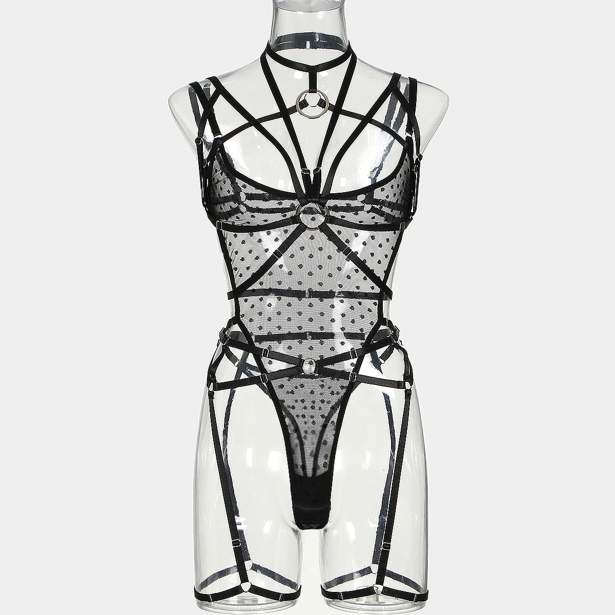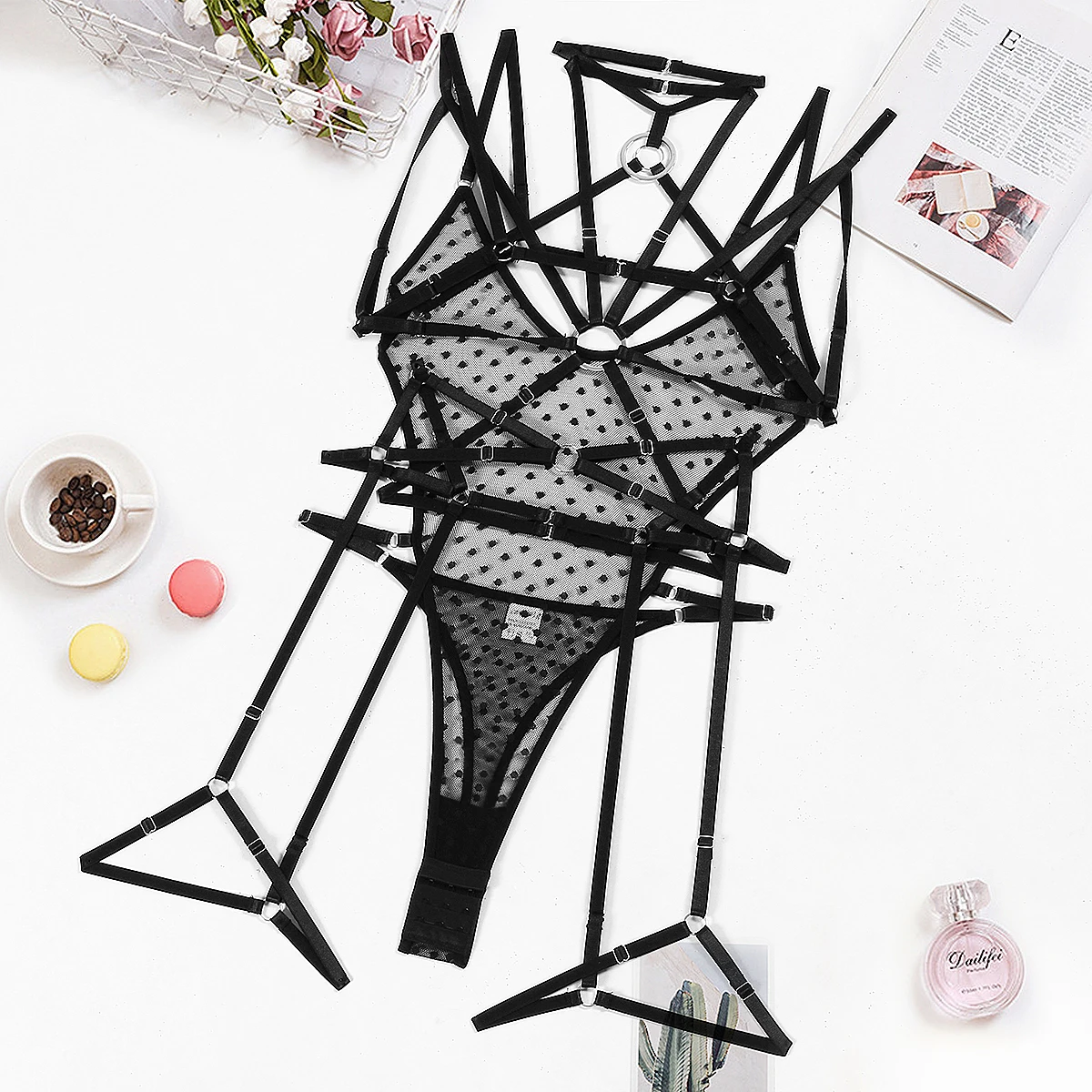 Fantasy Polka Dot Bodysuit See Through Lace y Body See Through Baby Dolls Open Croch Suit