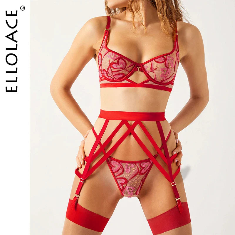 Ellolace Fantasy Sexy Lingerie Love 18 Fancy Women Underwear Red Sissy Sexy Dames g-String Valentine Romantic Bilizna Set