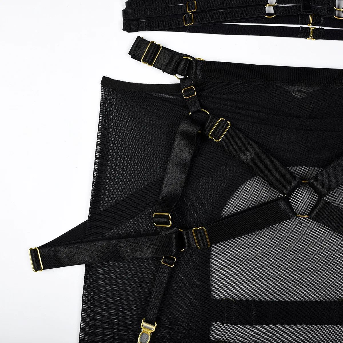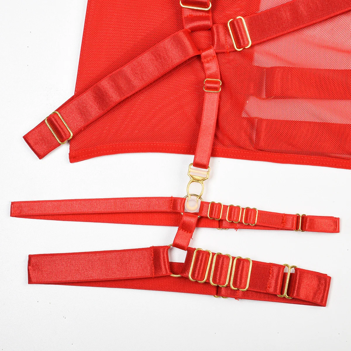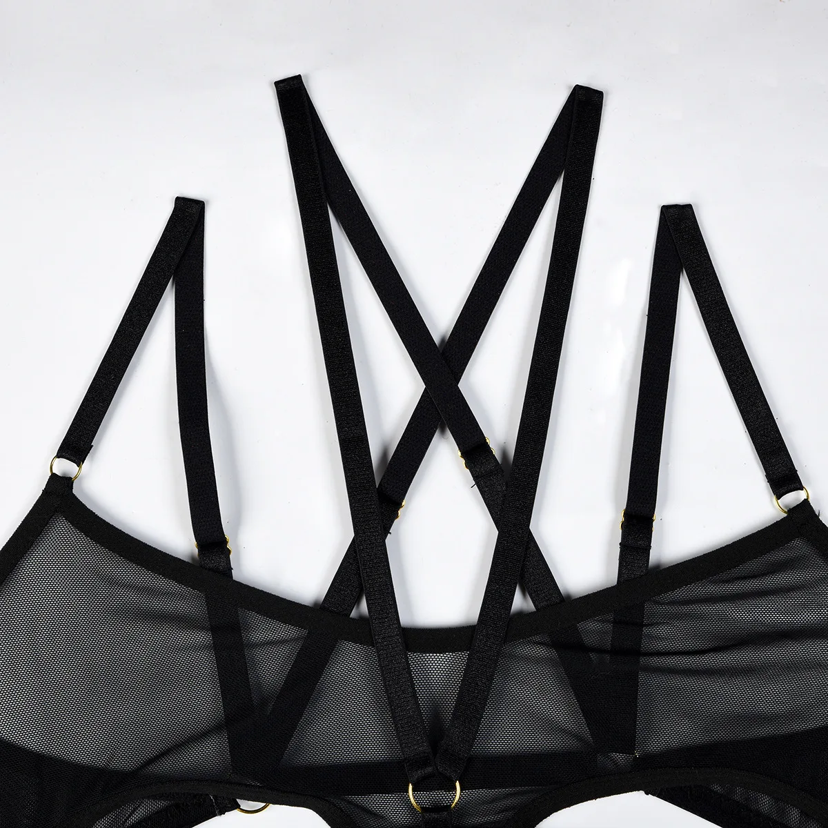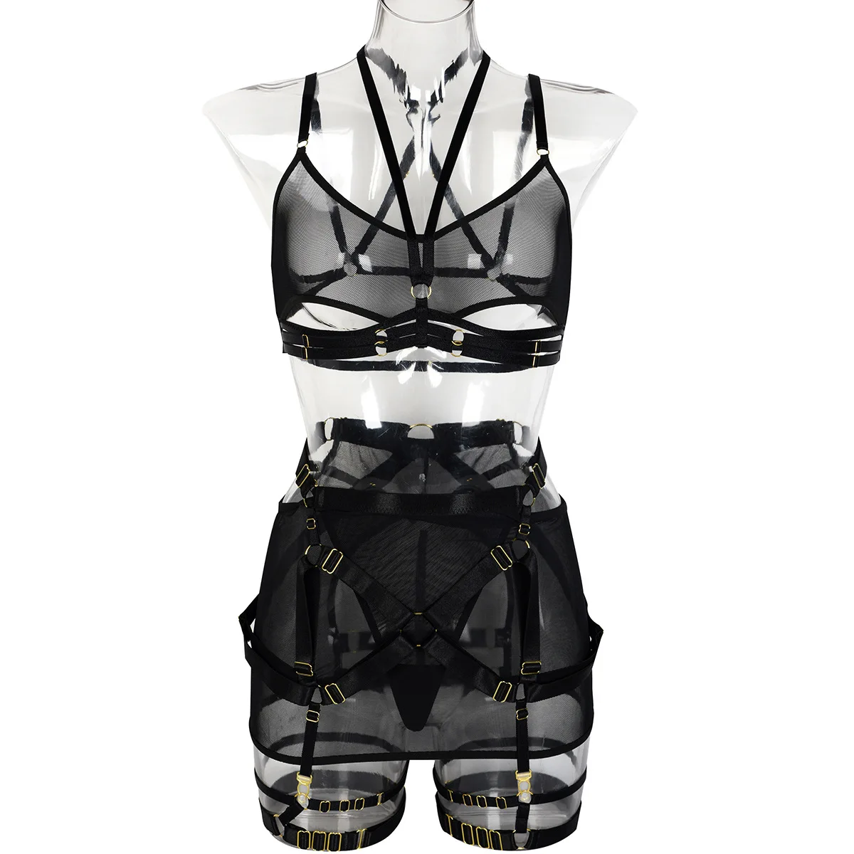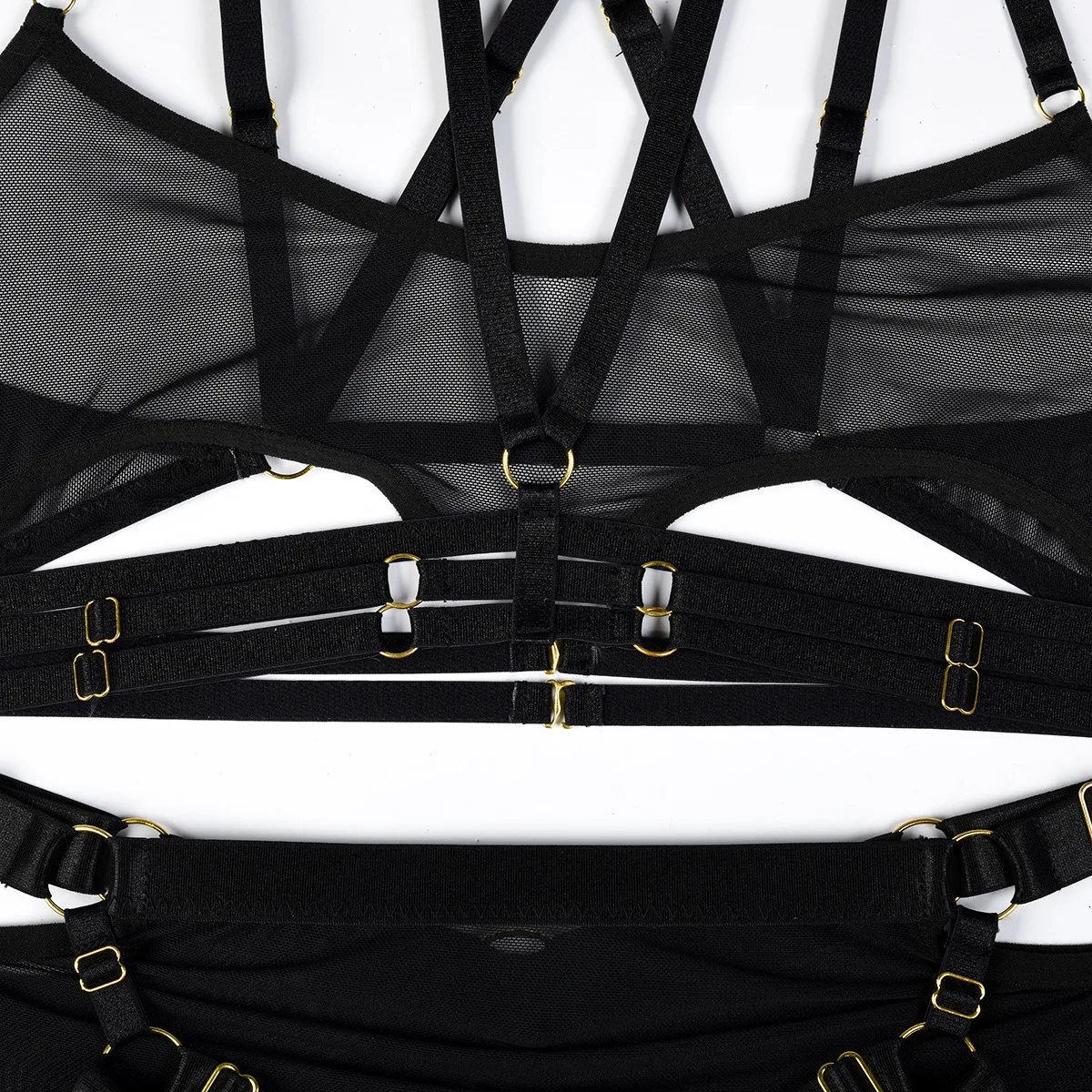 Ellolace Fetish Lingerie G-String Thong Luxury Underwear Cutting 5-Piece Garter Transparent Halter Bra Fine Exotic Bilizna Set