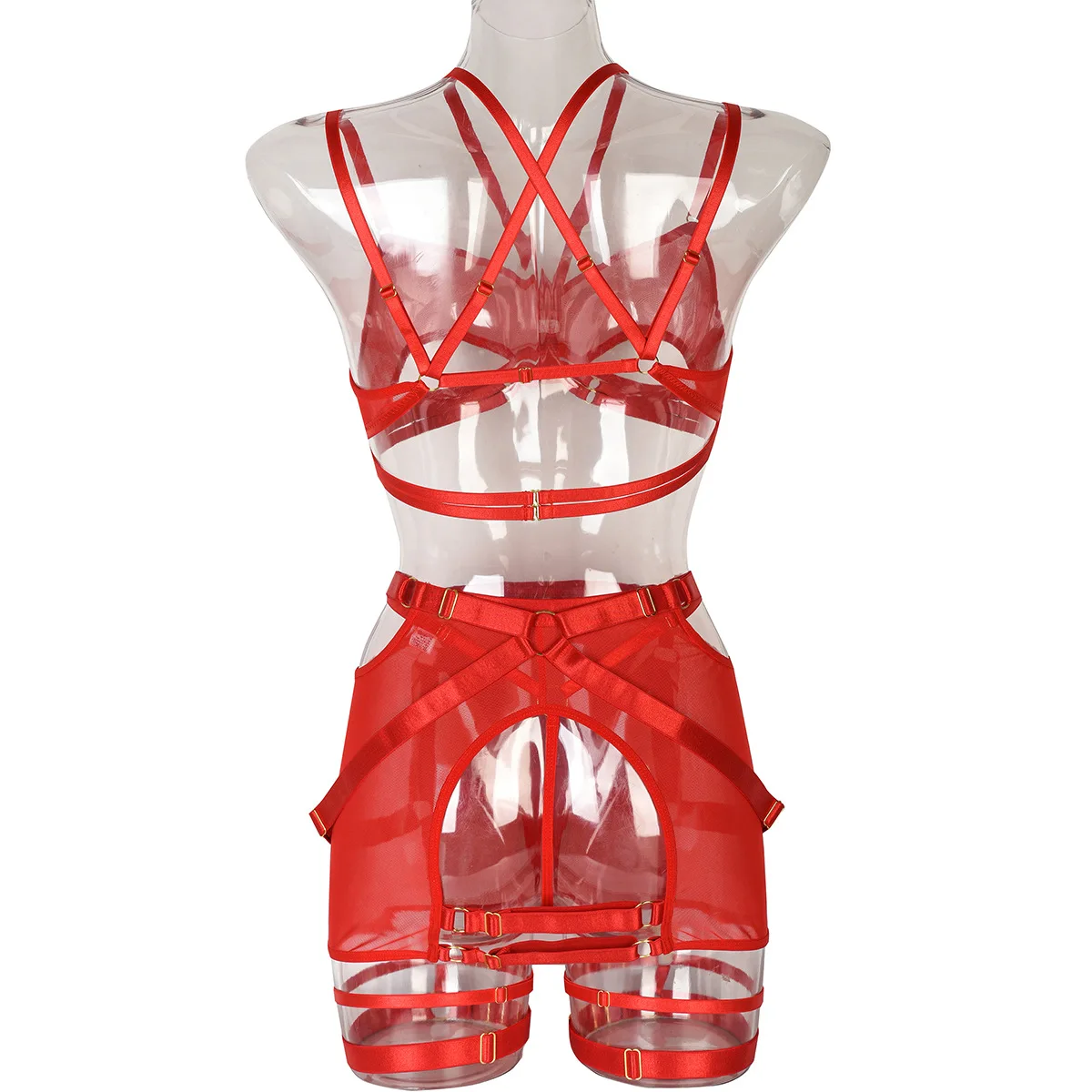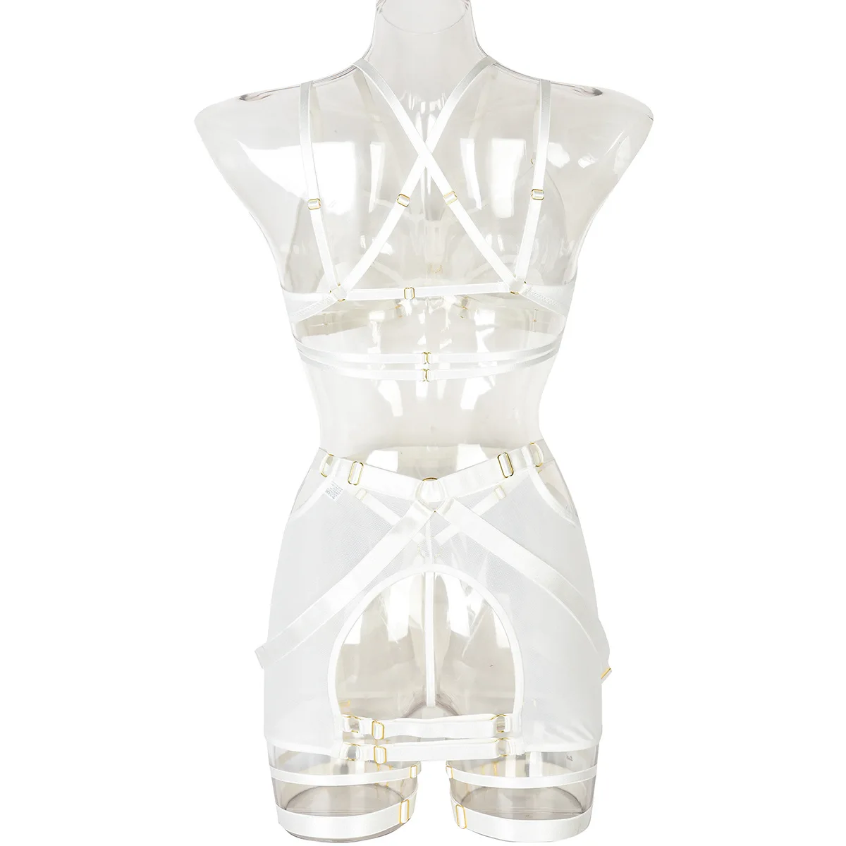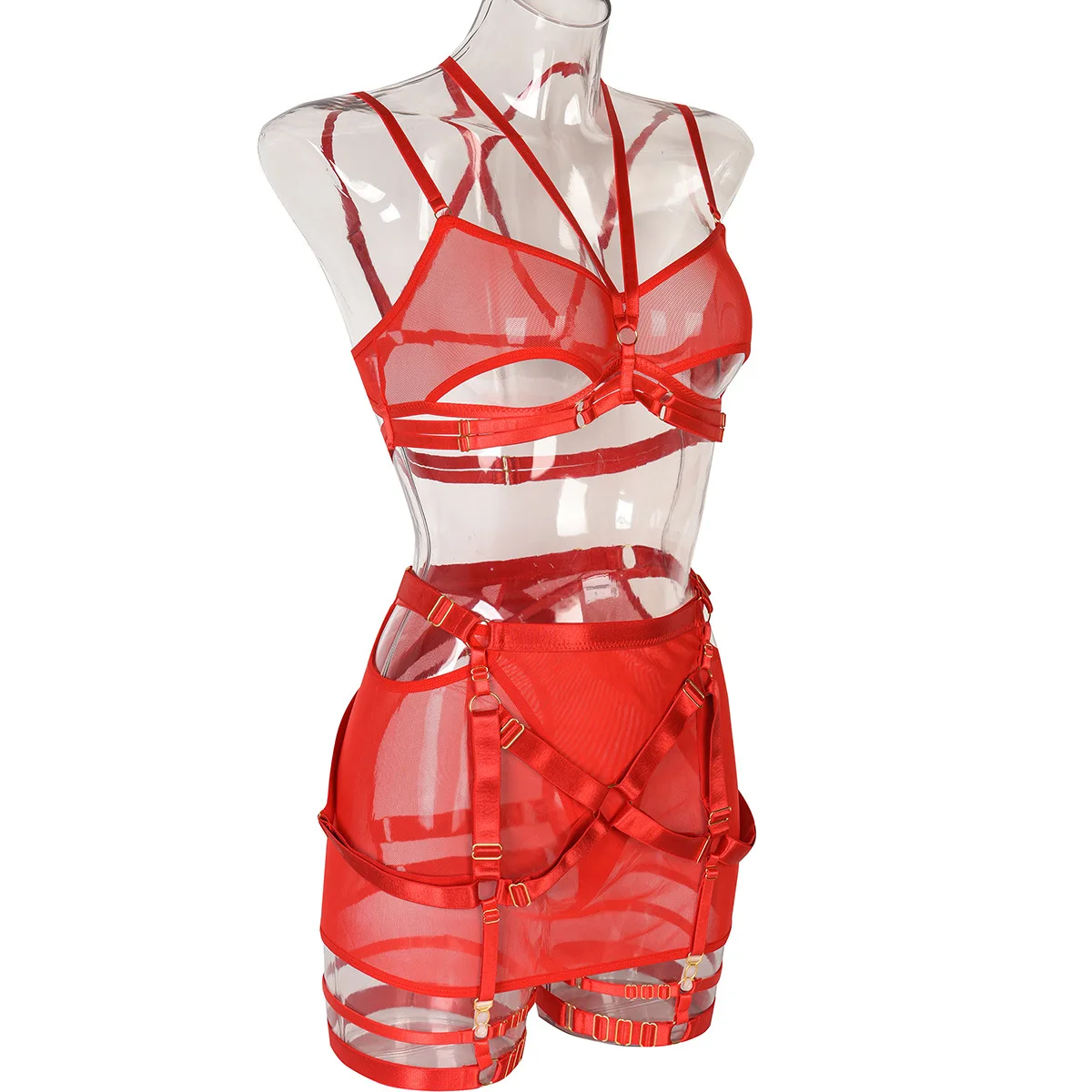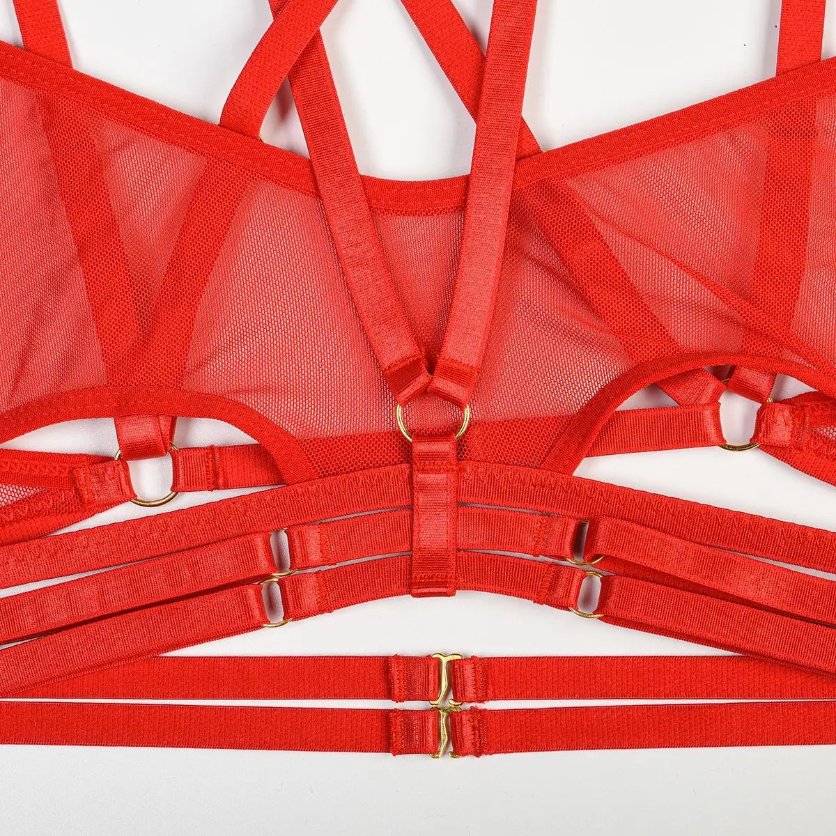 Ellolace Fetish Lingerie G-String Thong Luxury Underwear Cutting 5-Piece Garter Transparent Halter Bra Fine Exotic Bilizna Set