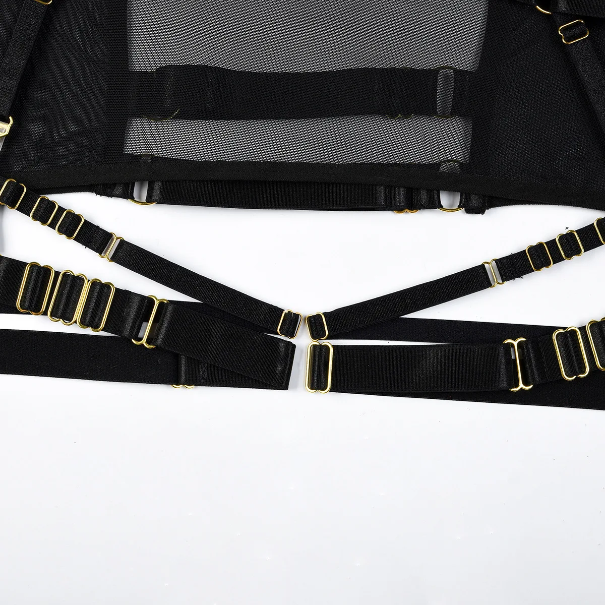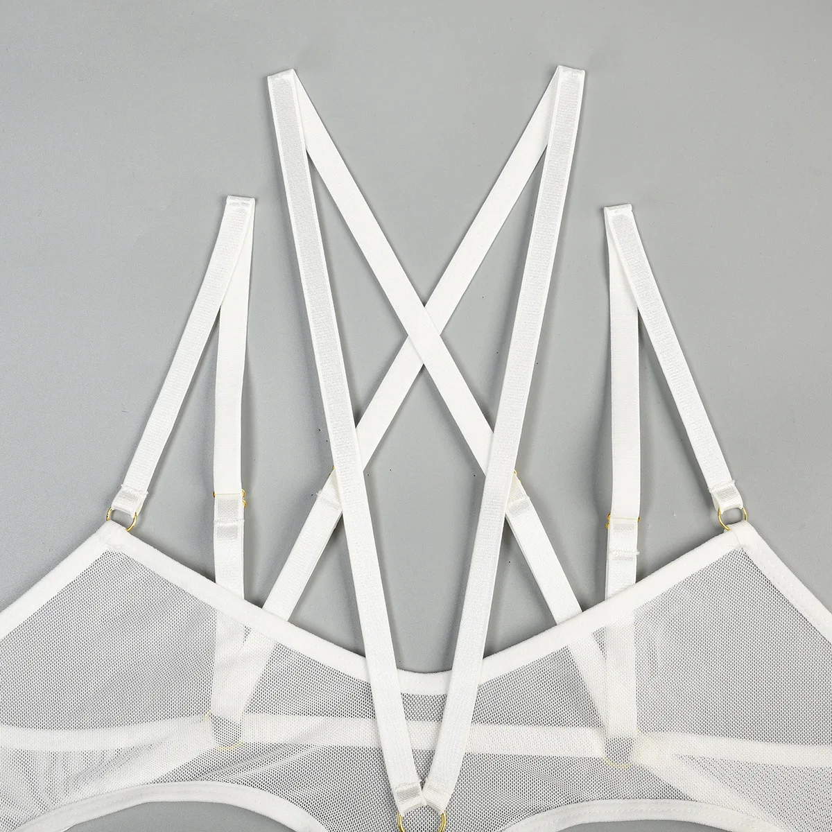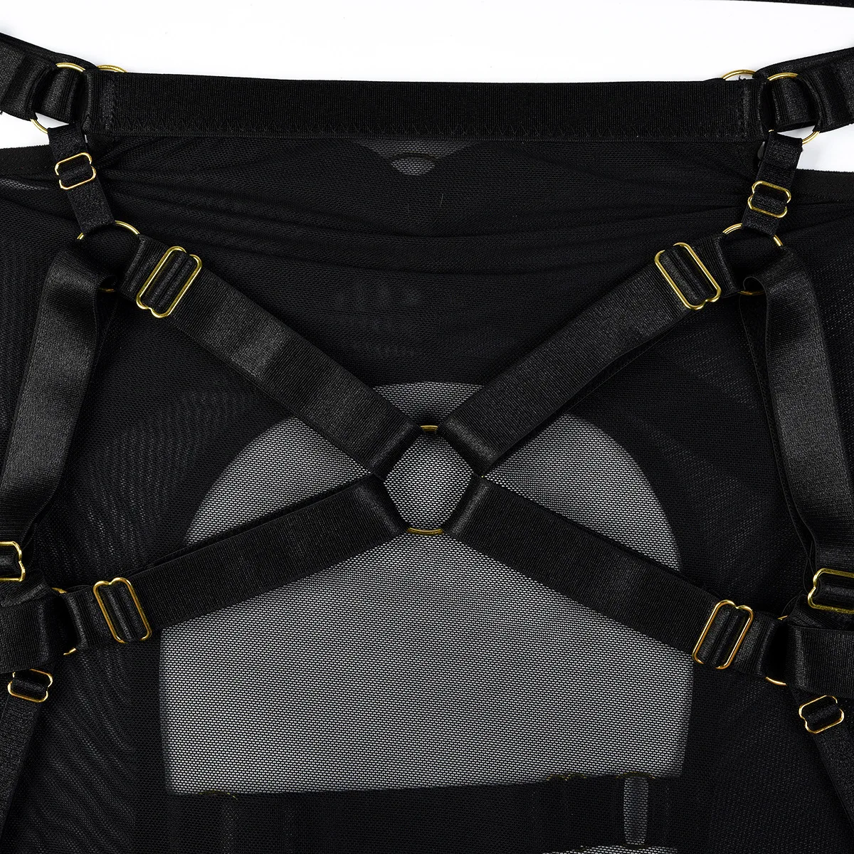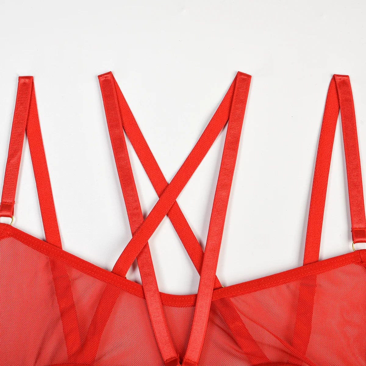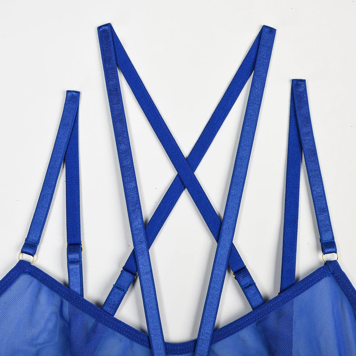 Ellolace Fetish Lingerie G-String Thong Luxury Underwear Cutting 5-Piece Garter Transparent Halter Bra Fine Exotic Bilizna Set