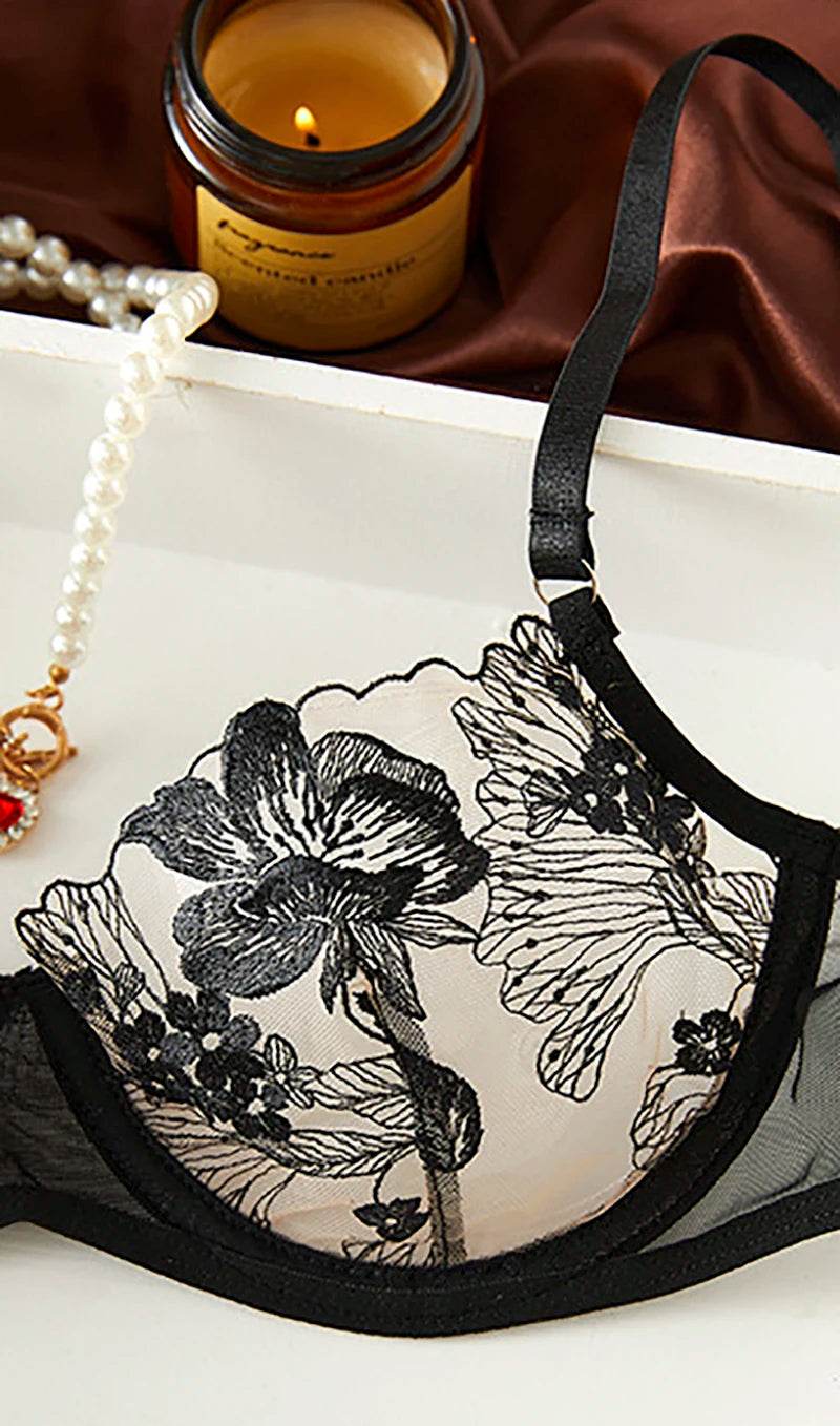 Floral Lingerie See Through Intimate Underwear Hot y Sensual Exotic Sets Beautiful Sheer Bilizna Set