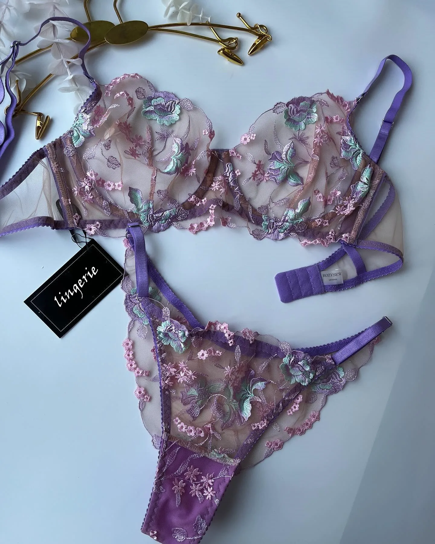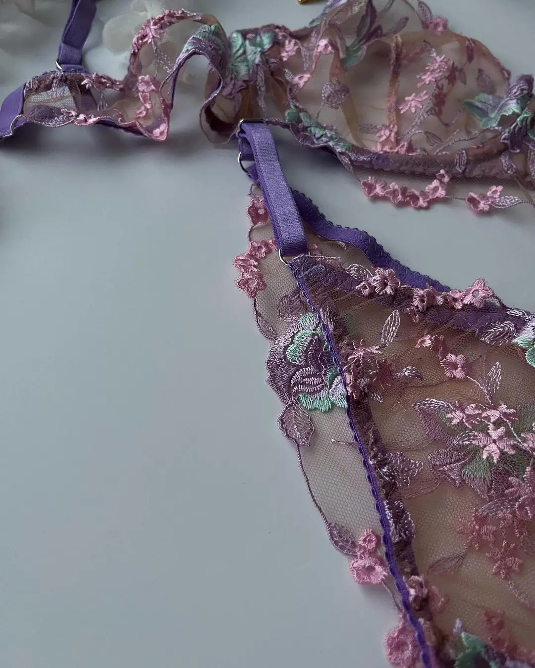 Ellolace Floral Fancy Transparent Bra Romantic Lingerie Sexy Bilizna For Sex Set Lace Erotic See-Through Underwear
