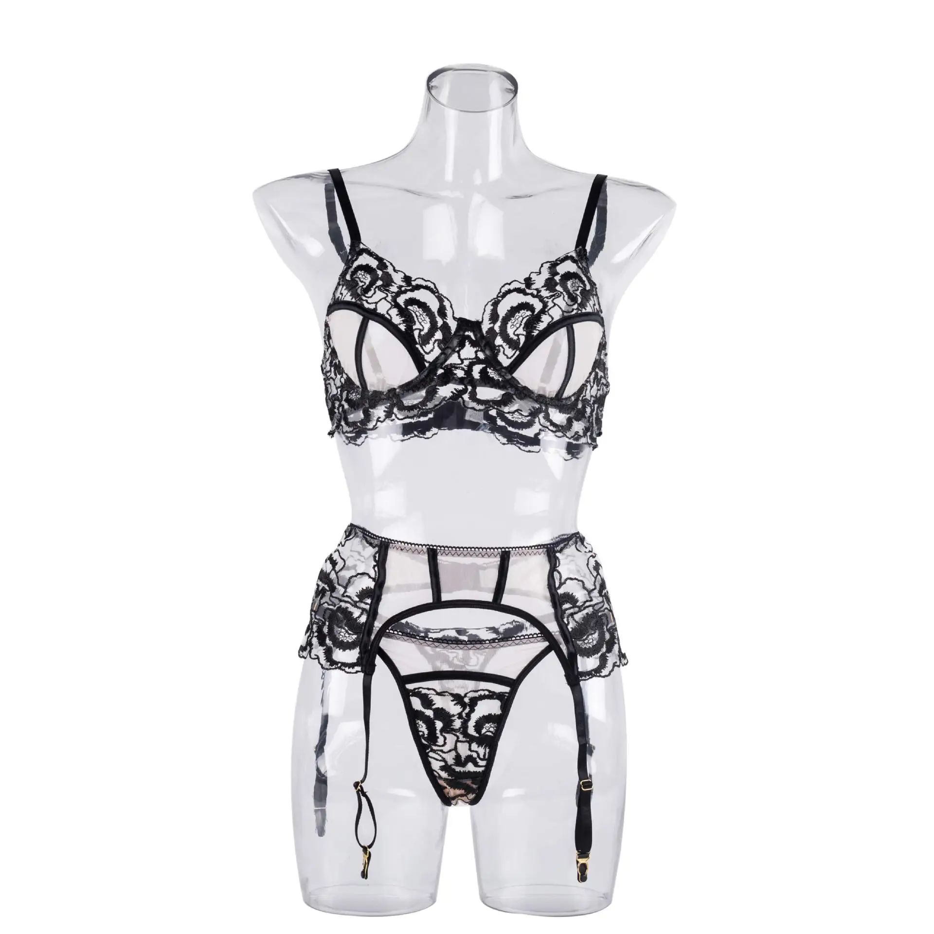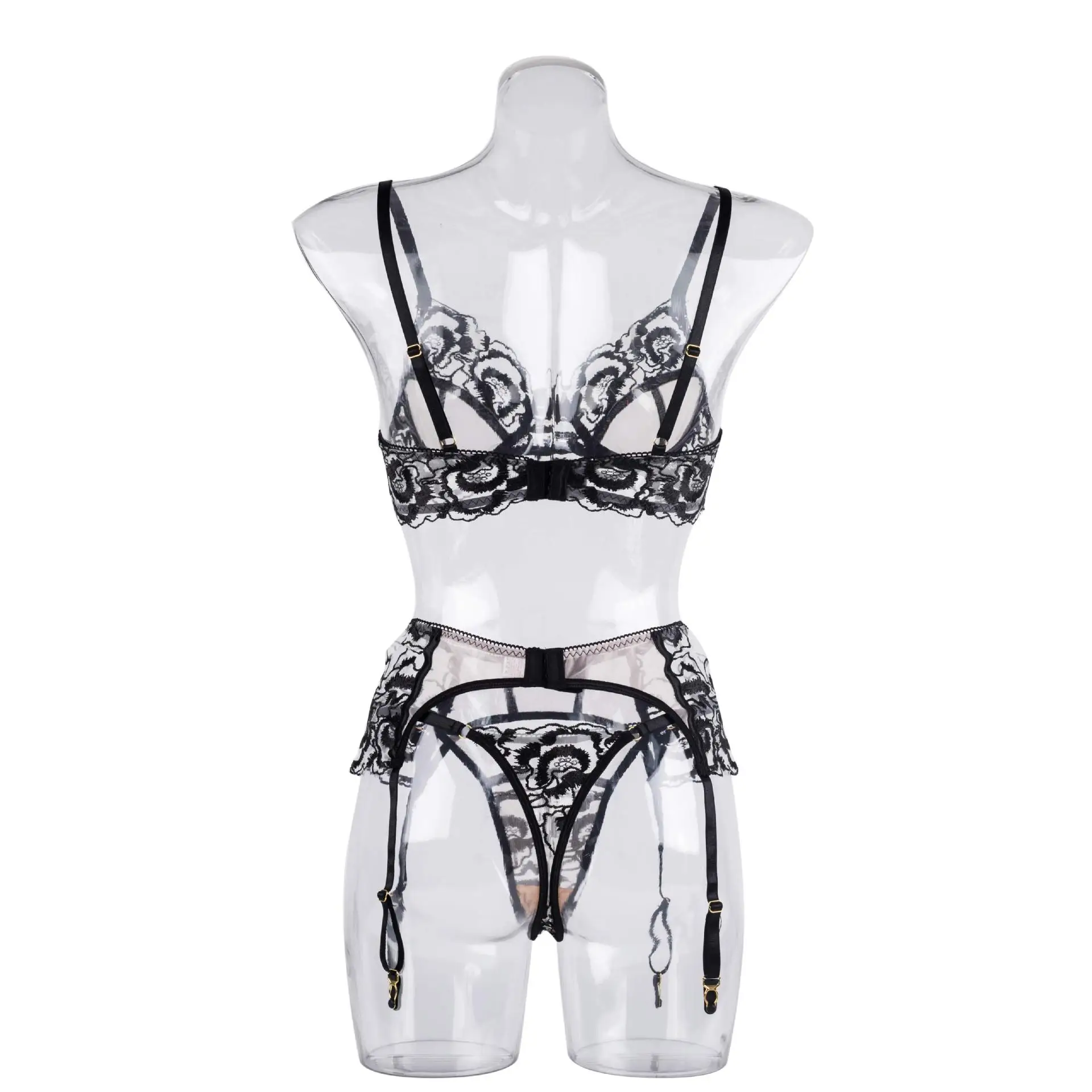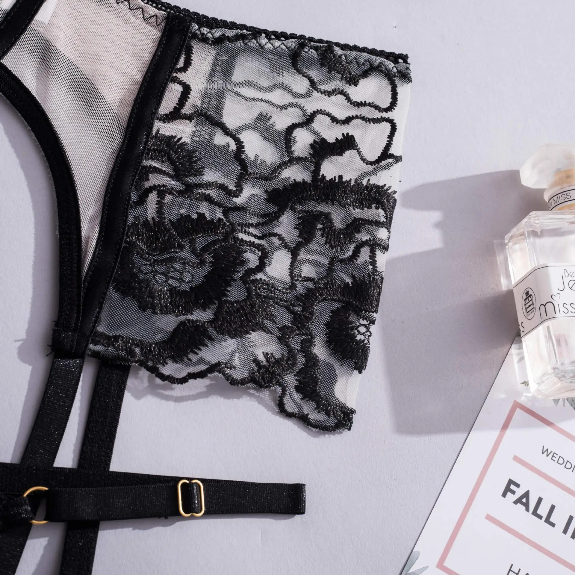 Ellolace Floral See Through Lingerie Lace Embroidery Fancy Bra Kit Push Up Beautiful Underwear Delicate Luxury Outfits