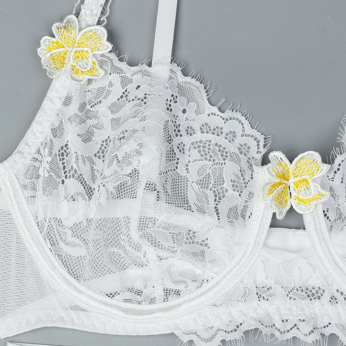Ellolace FloralLove Sexy Outfits Lingerie Transparent Lace Women's Underwear g-String Matching Attractive Chest Suspenders