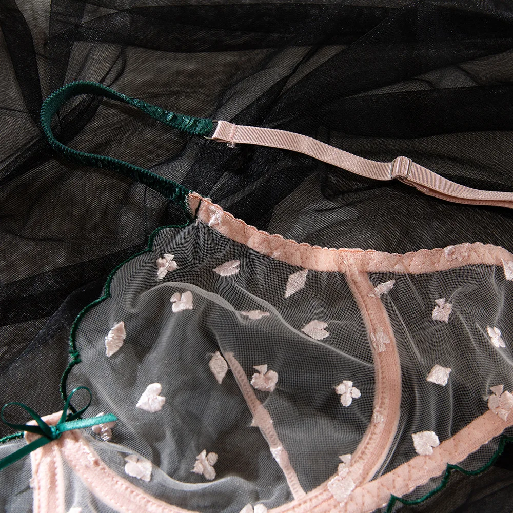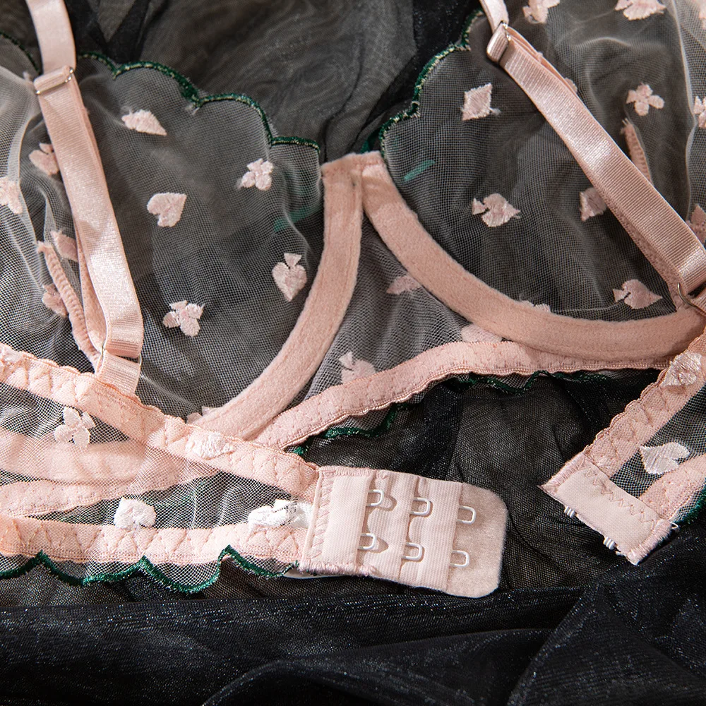 Ellolace Heart Sensual Lingerie Transparent Lace Sexy Push Up Onlyfans Kits Underwear Set Seamless Contrast Color Exotic Sets