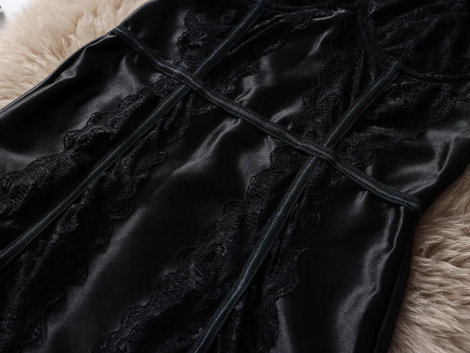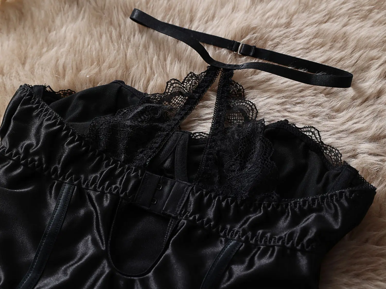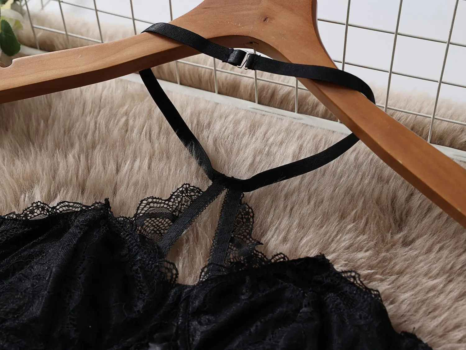 Ellolace Lace Halter Erotic Dress See Through Super Mini Dresses Sissy Daring Bodycon Statin Patchwork Sexy Clothes
