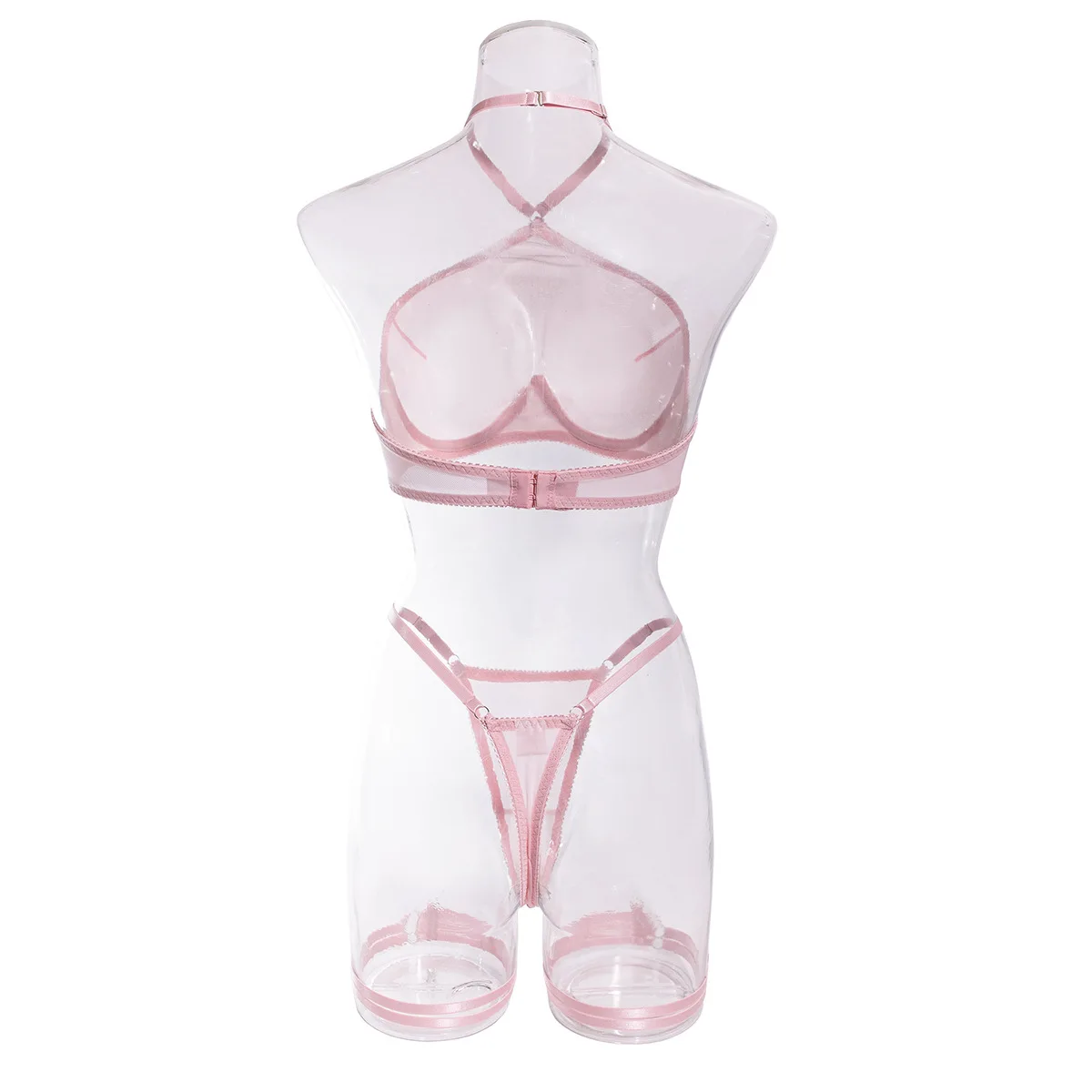 Lace Lingeries Sets y Fantasy Halter Bra See Through Bilizna Exotic Sets French Push Up Underwear Outfit