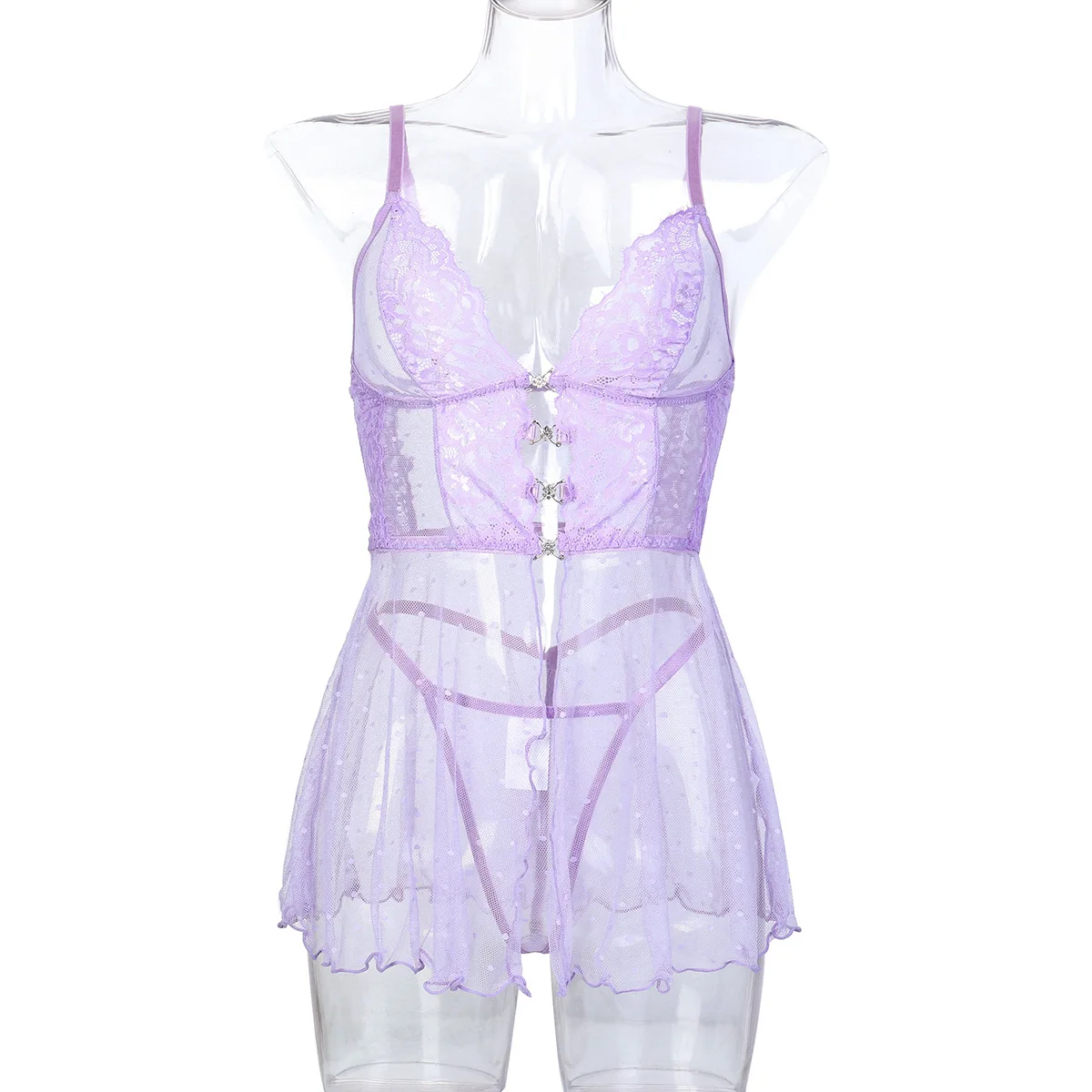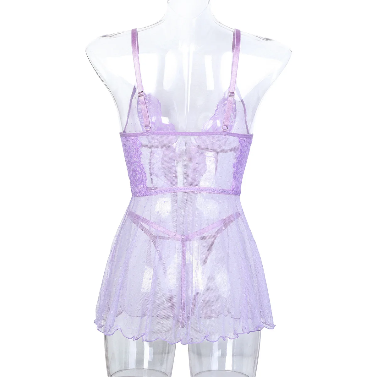Ellolace Lace Nightdress Fantasy Erotic Suit Transparent Body Sexy Costume See-Through G-String Sissy Sex Suit Sexy Erotic Fun