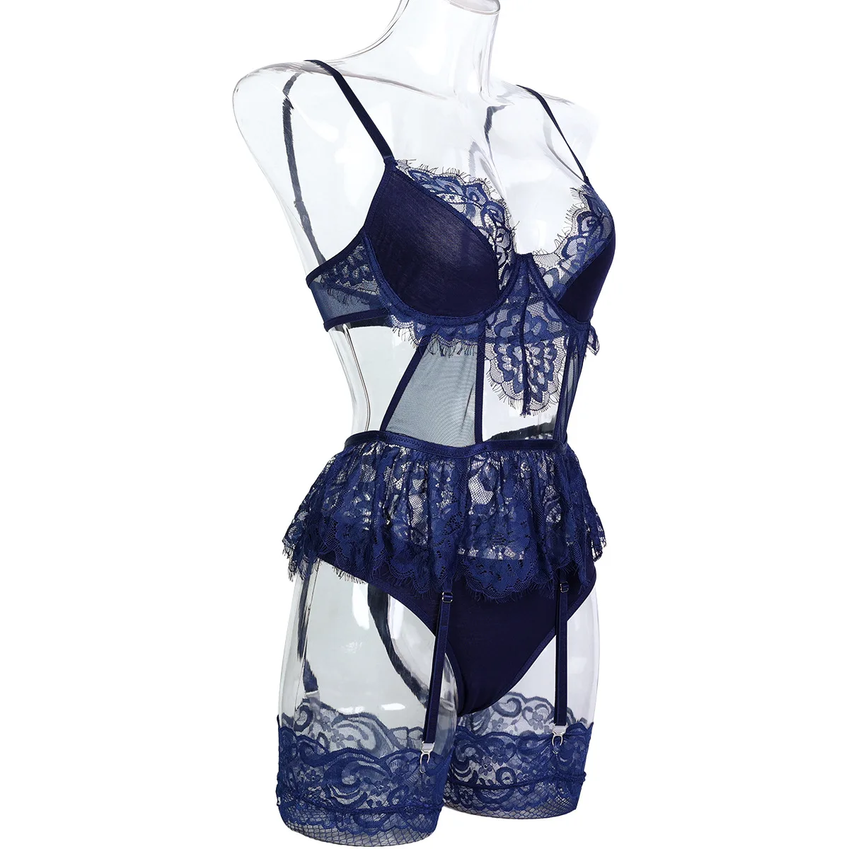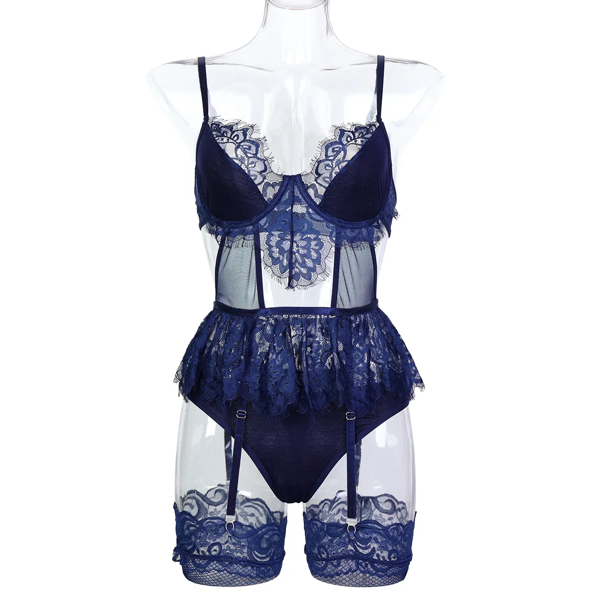 Ellolace Lace Romantic Lingeries Cut Out Bilizna Sexy Body g-String Ruffled Stocking Ensemble Lingeries Sexy Honeymoon Outfit