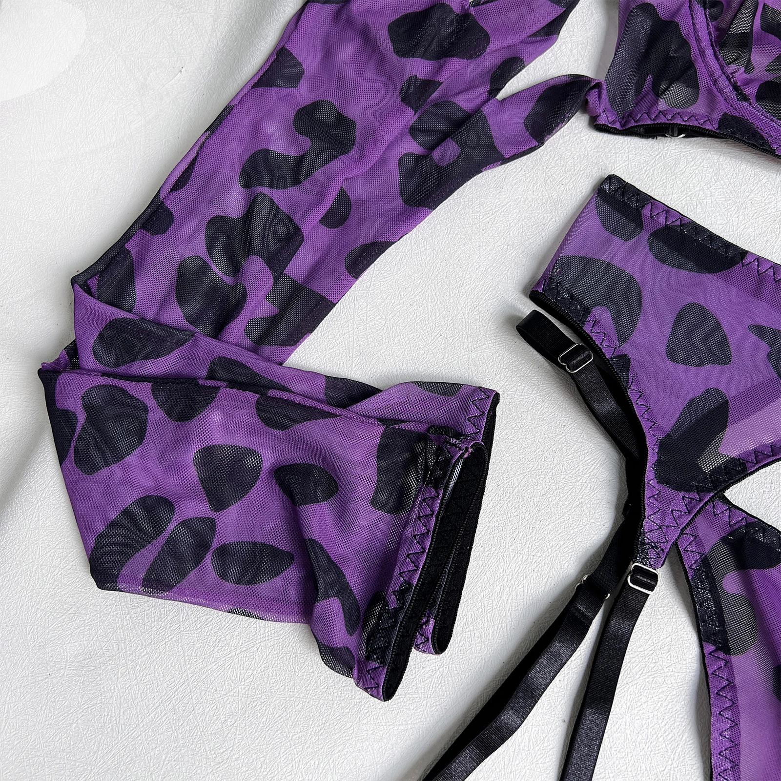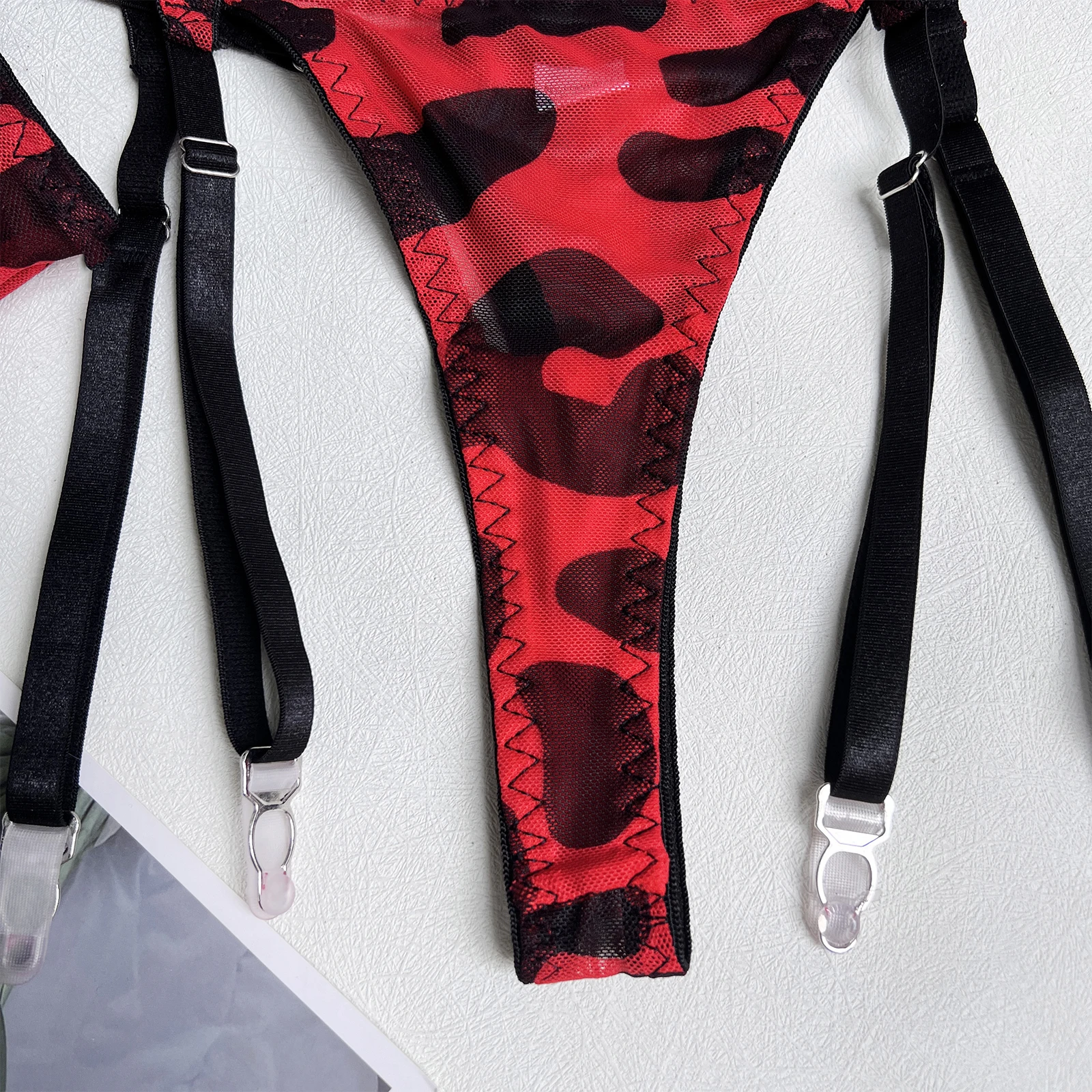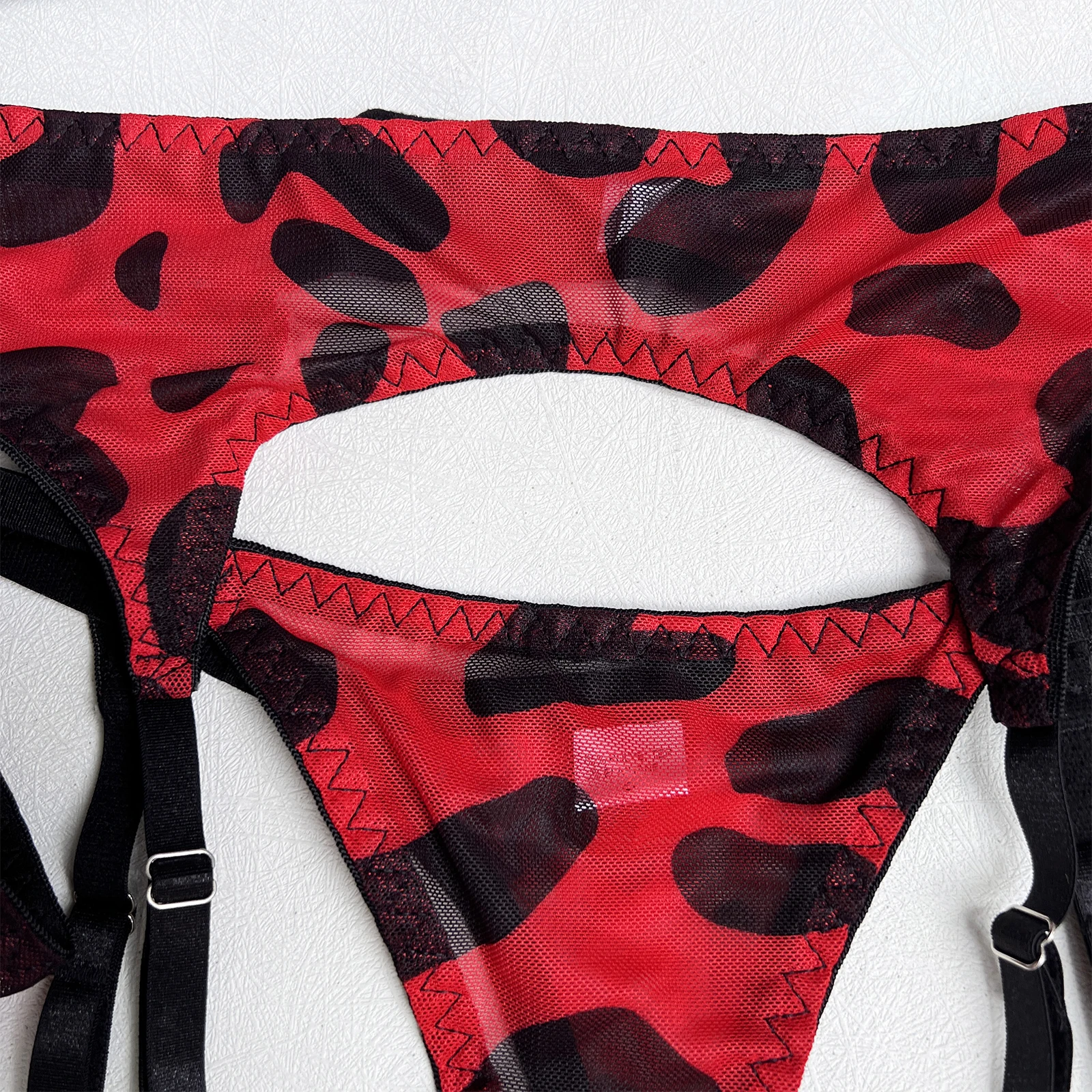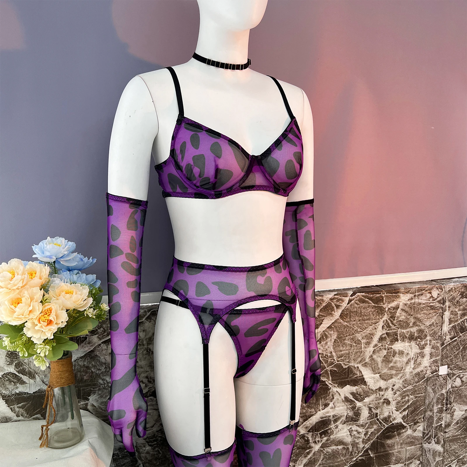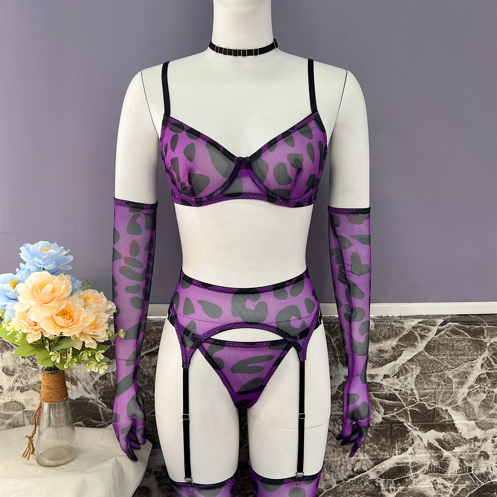 Ellolace Leopard Lingerie With Stocking Gloves Fancy Seamless Underwear 6-Piece Garter Belt Set Intim Goods Lace Exotic Sets