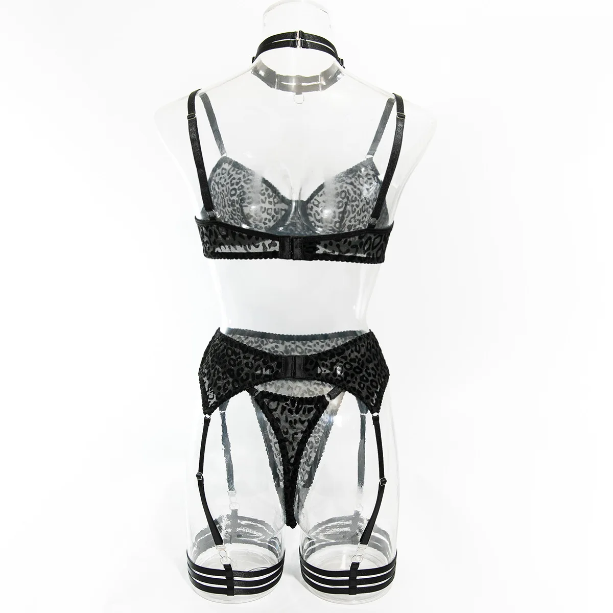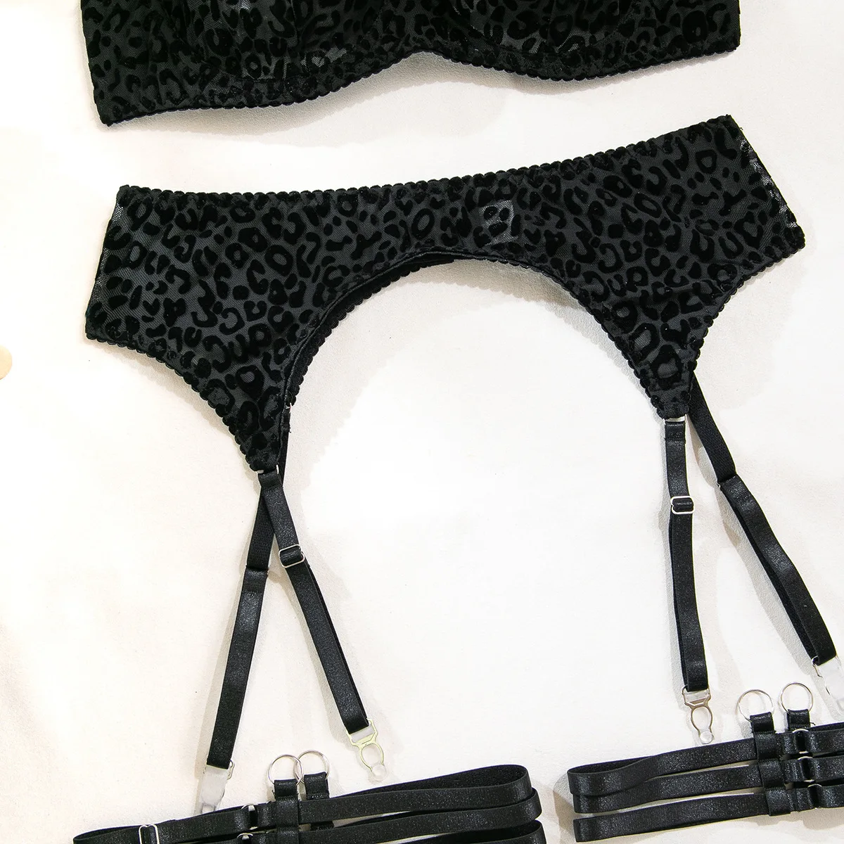 Ellolace Leopard Sexy Lingеrie Set Transparent Push Up Brazilian Underwear Without Censorship Ensemble 6-Piece Onlyfans Kit