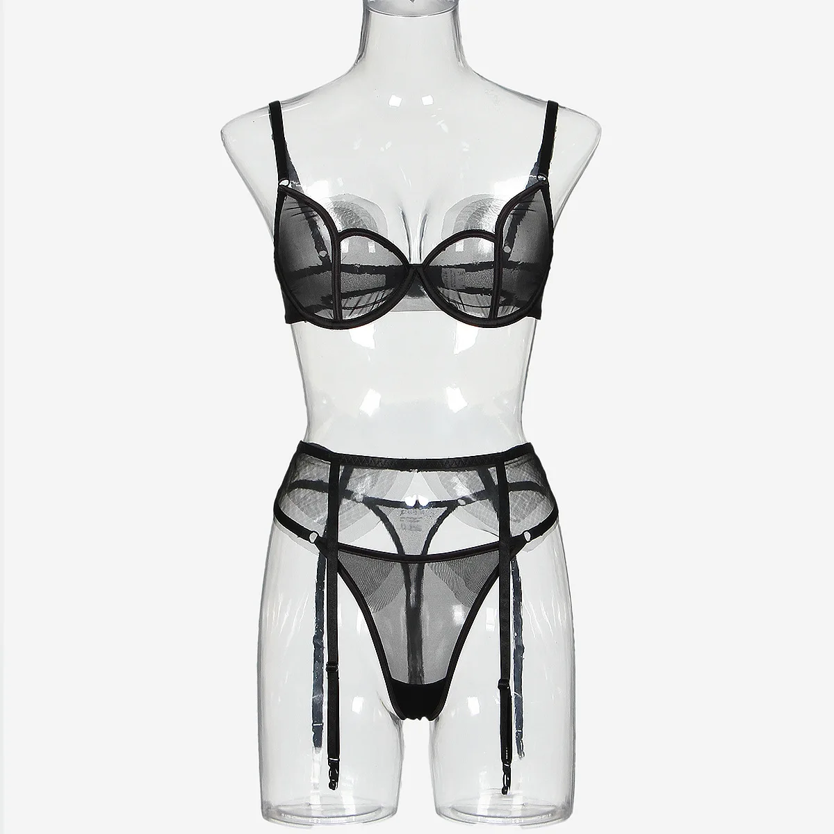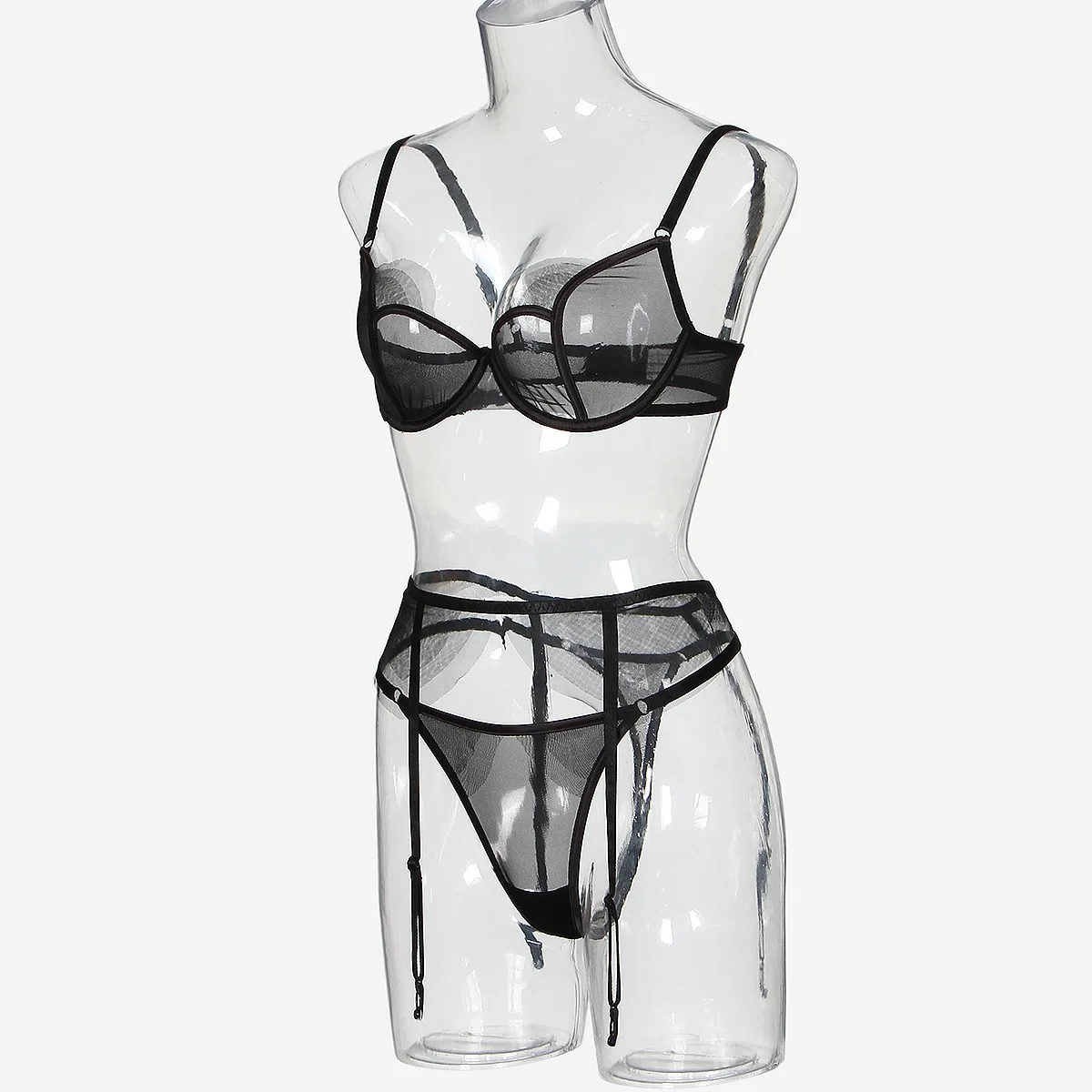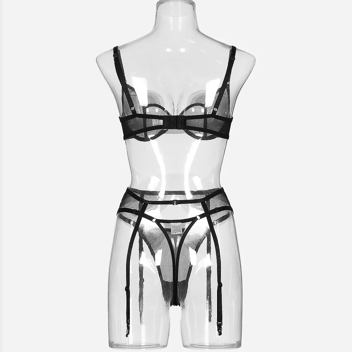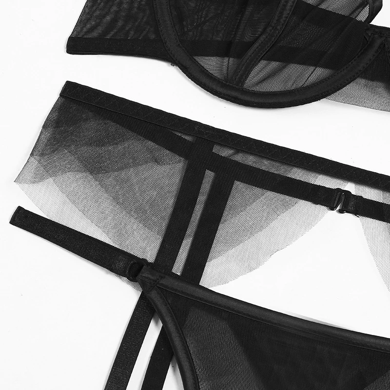 Ellolace Lingerie Sheer Lace Bra Kit Push Up Sissy Transparent Underwear Garter Female Sex Suit Fancy Attractive Bilizna Set