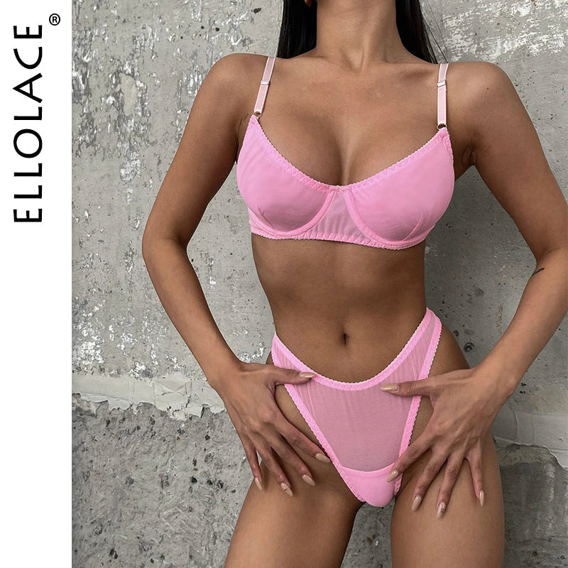 Ellolace Macarons Lingerie Sexy Seamless Underwear Set Women 2 Piece Bra Kit Push Up Lace Intimate Outfits Sensual Exotic Sets
