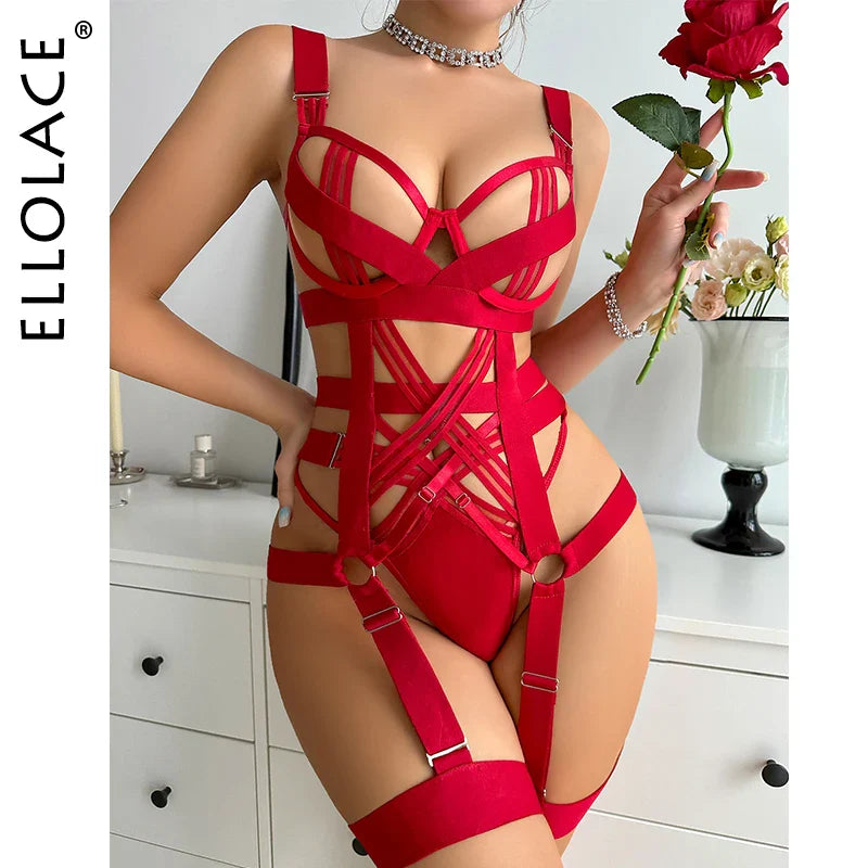 Ellolace Naked Bandage Lingerie Set Women 2 Piece Hot Sexy Fancy Underwear Women Uncensored Transparent Bilizna Set Of Sex