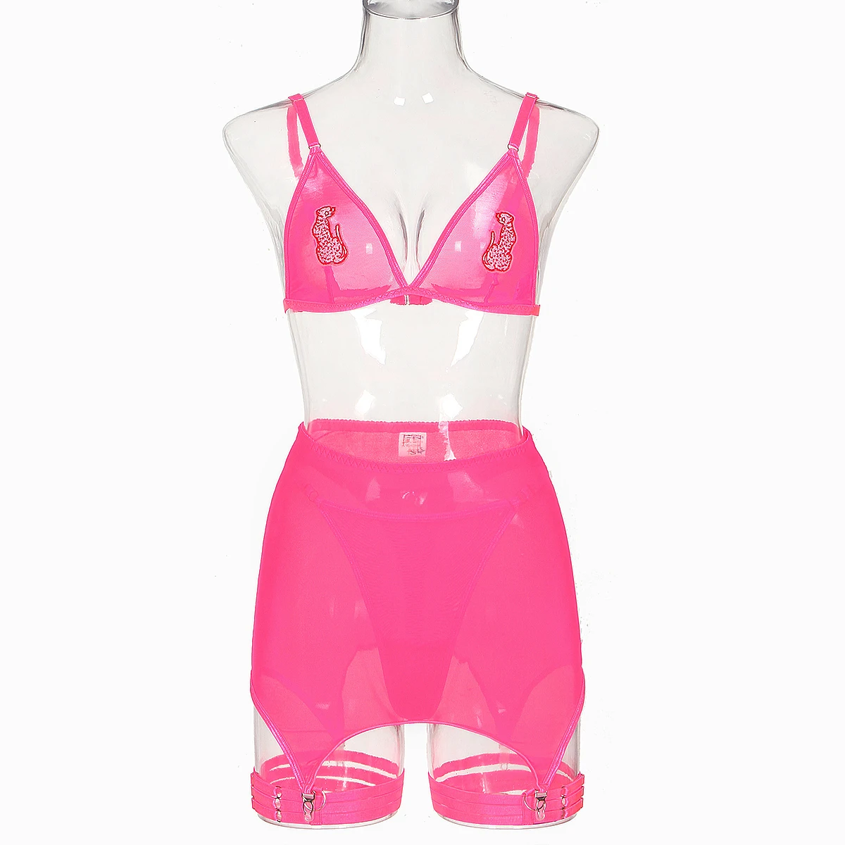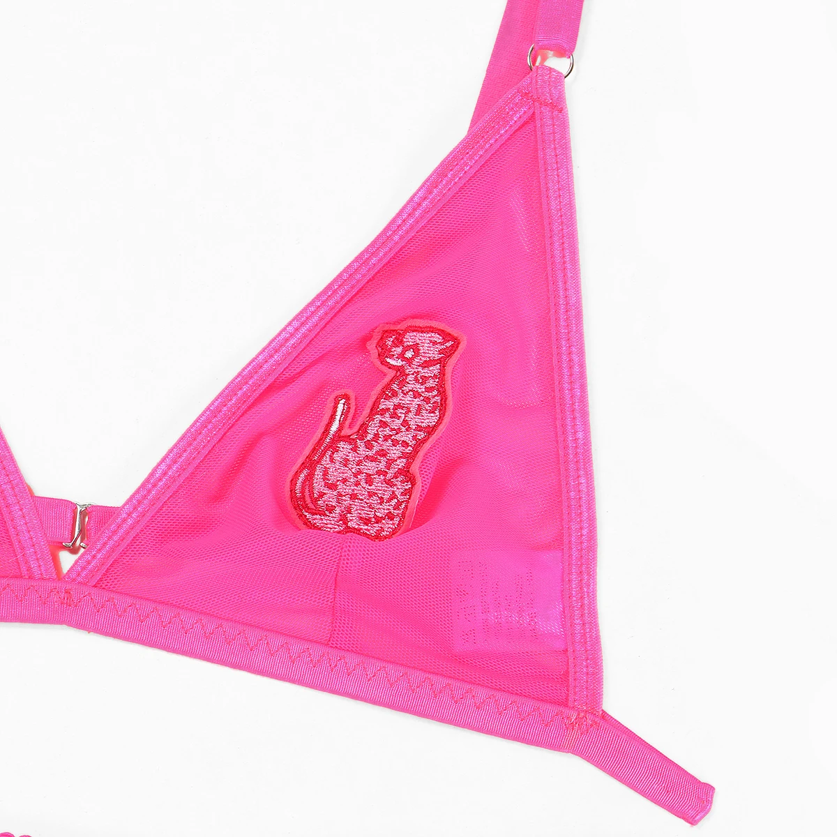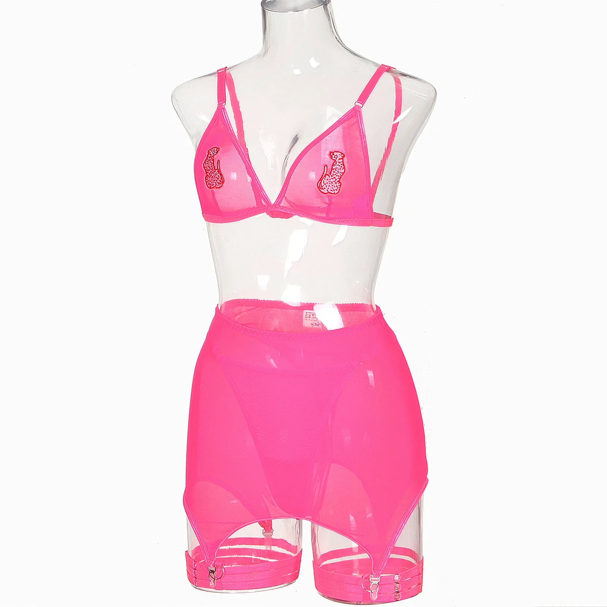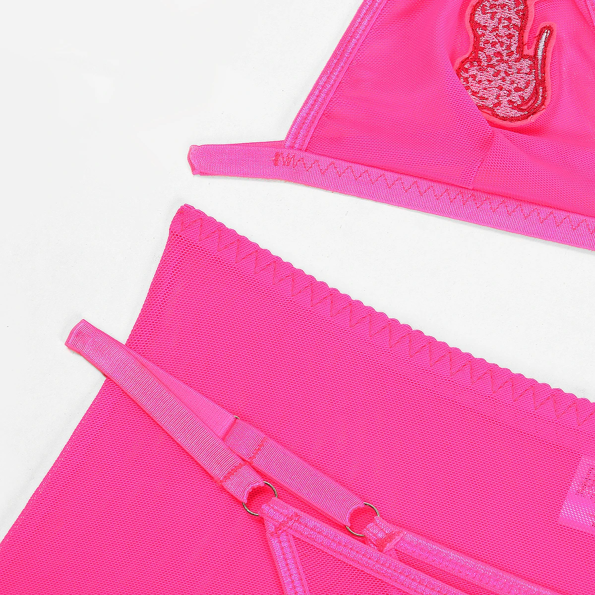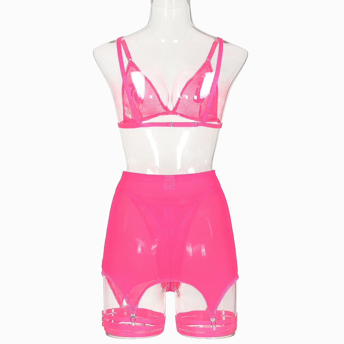 Neon Pink Sensual Lingerie See Through Romantic Mesh Underwear Seamless Bilizna Outfits Transparent Lace Intimate Sets