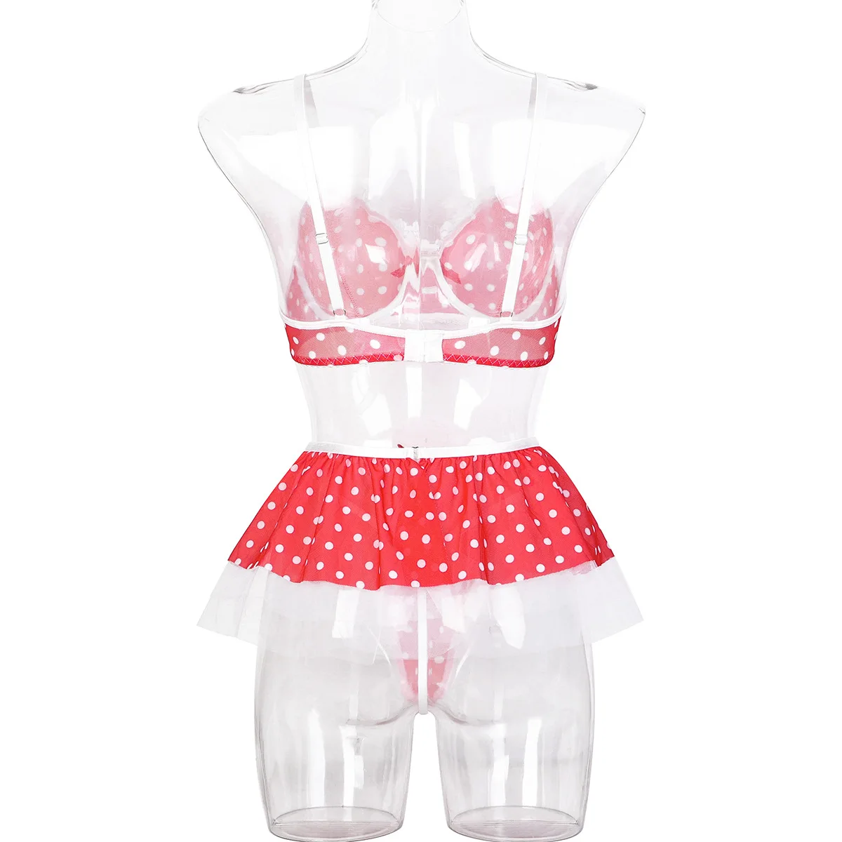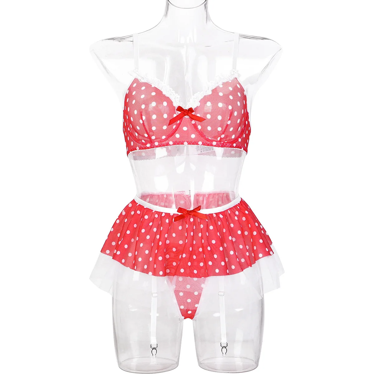 Ellolace Polka Dot Ensemble Lingeries Femmes Sweet Girl Bowknot Lace Fancy Erotic Outfits Garter Stocking Push Up Bilizna Set