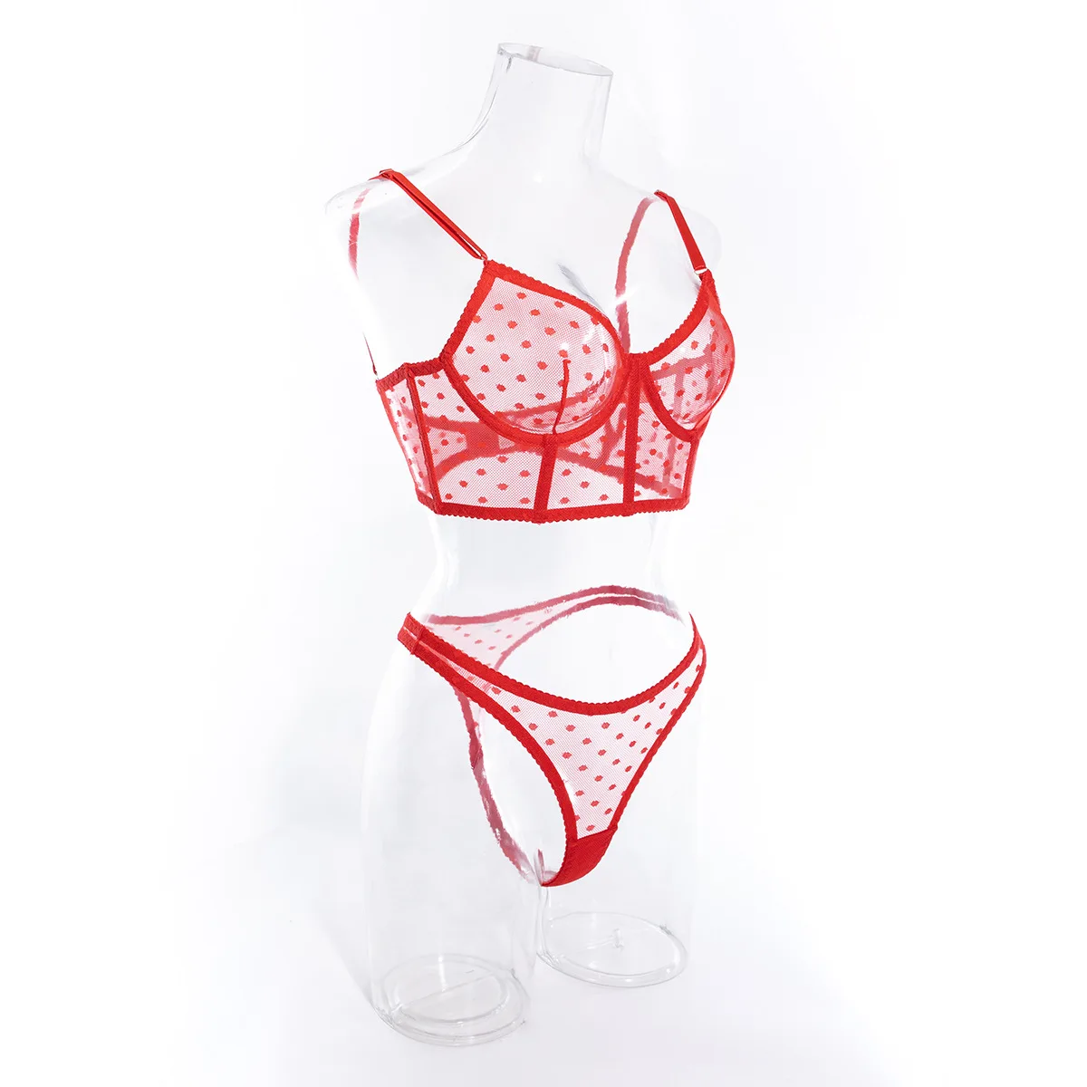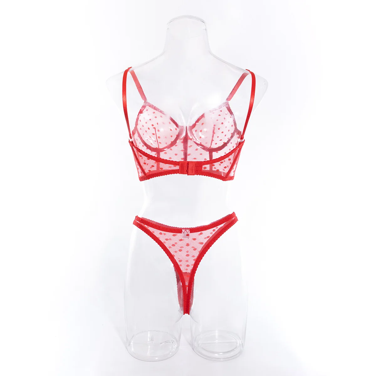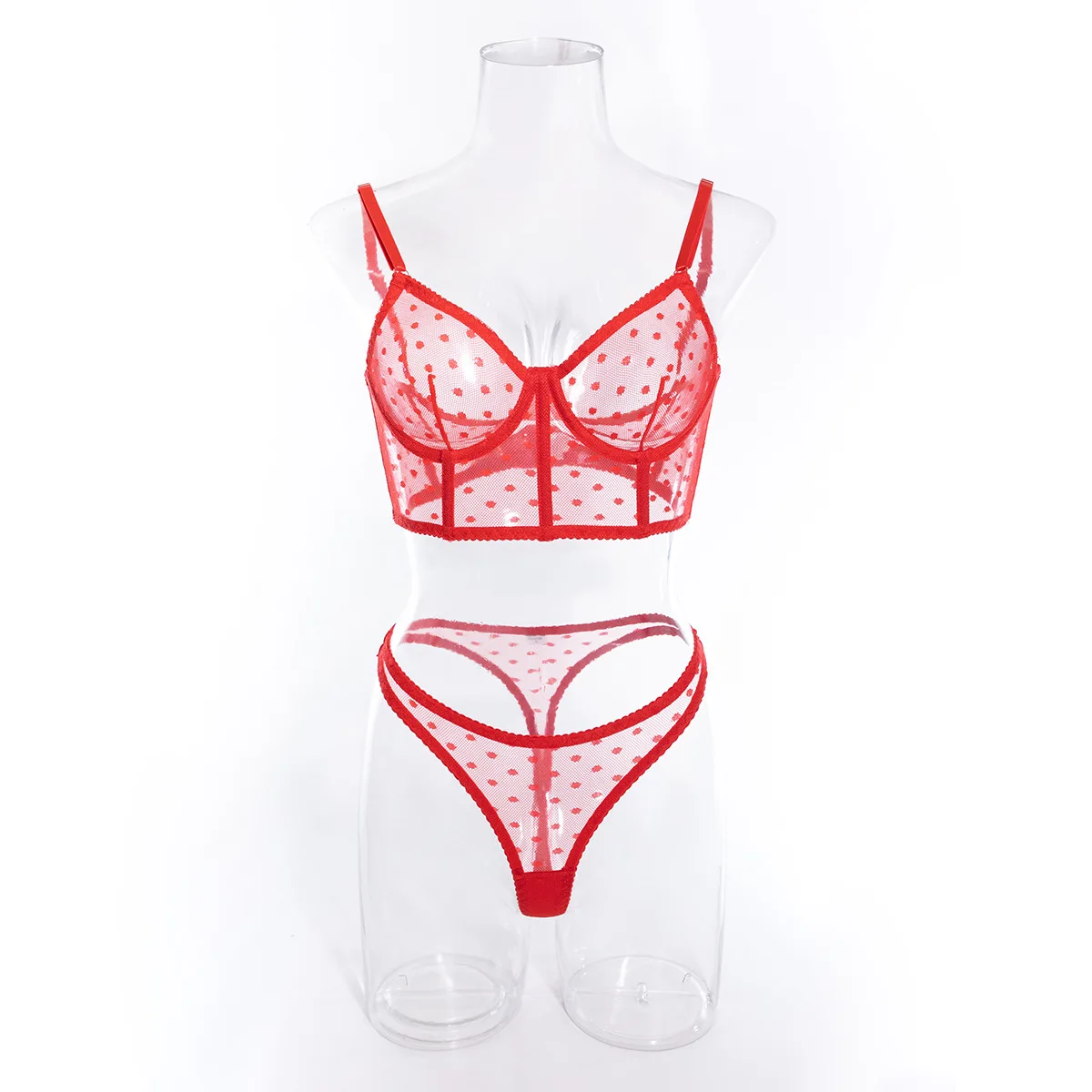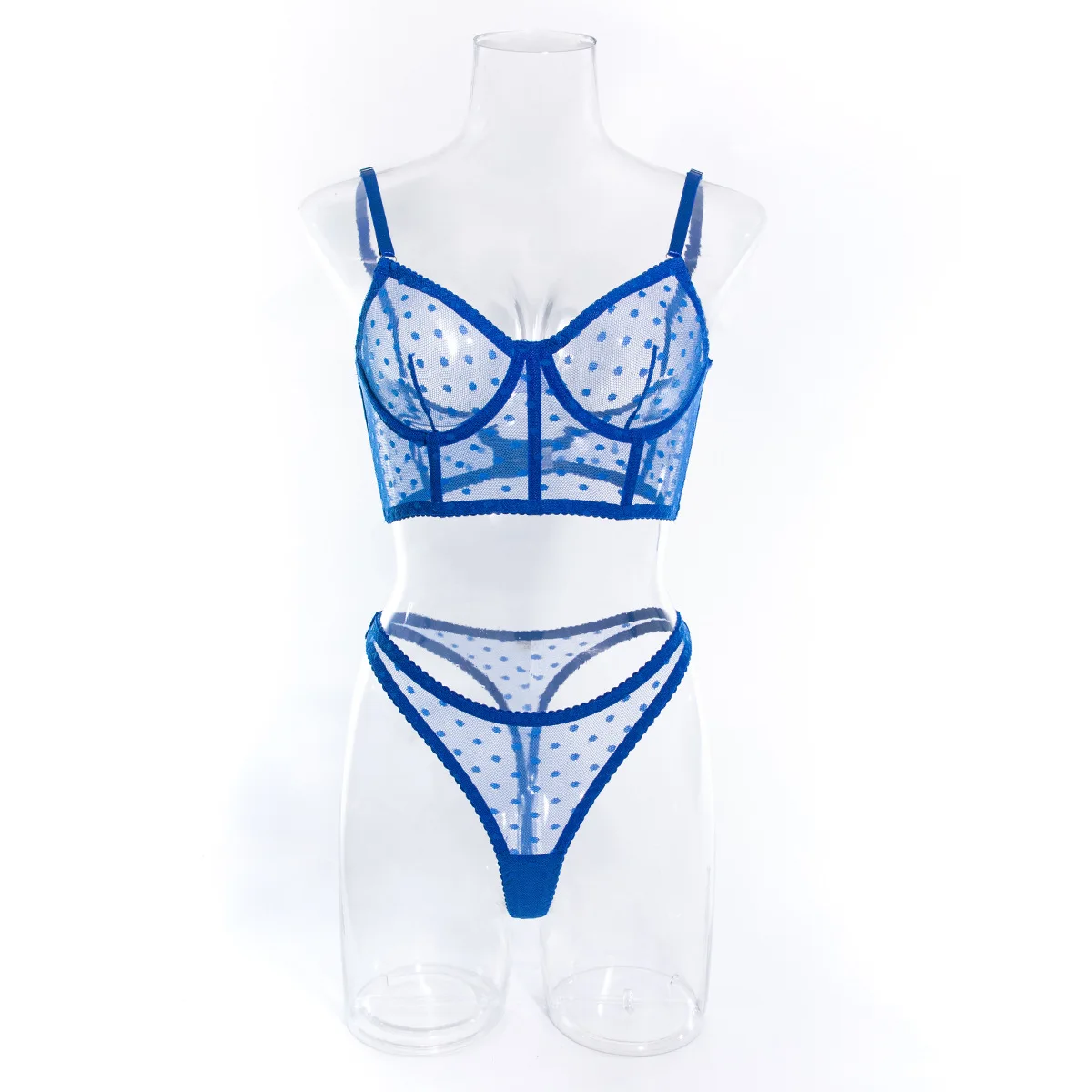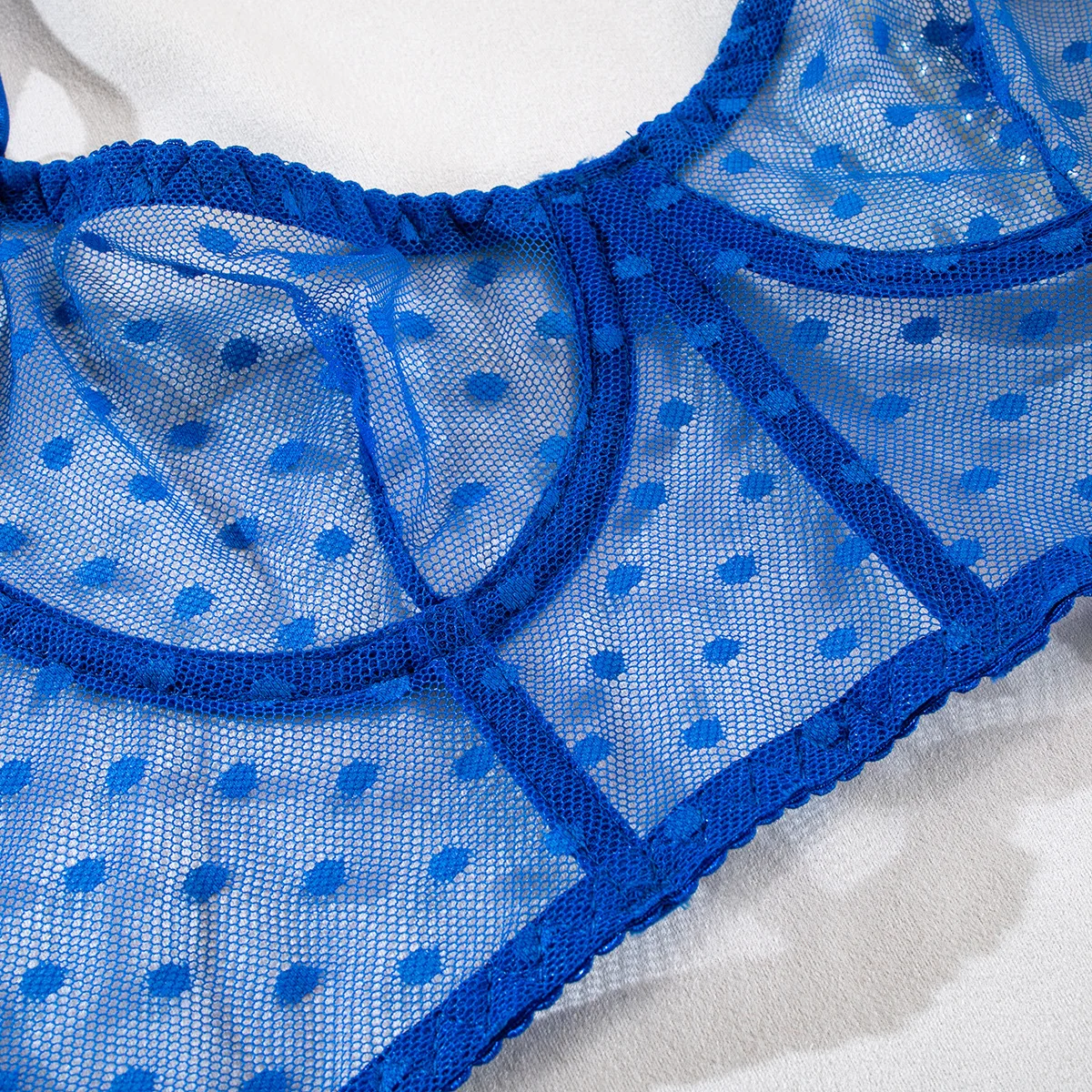 Ellolace Polka Dot Sensual Lingerie Transparent Lace Set Women 2 Piece Seamless Bilizna Set See Through Sexy Black Intimate
