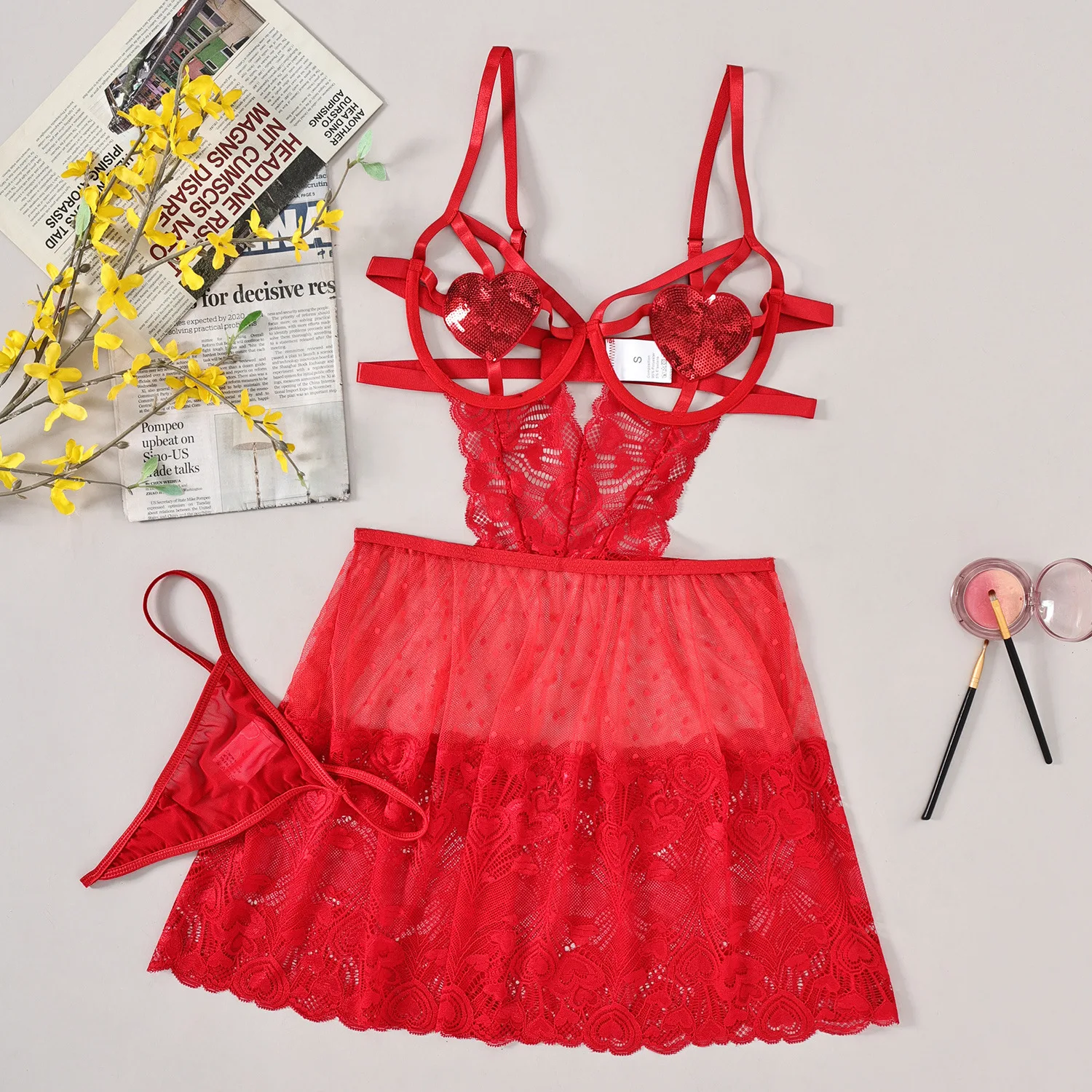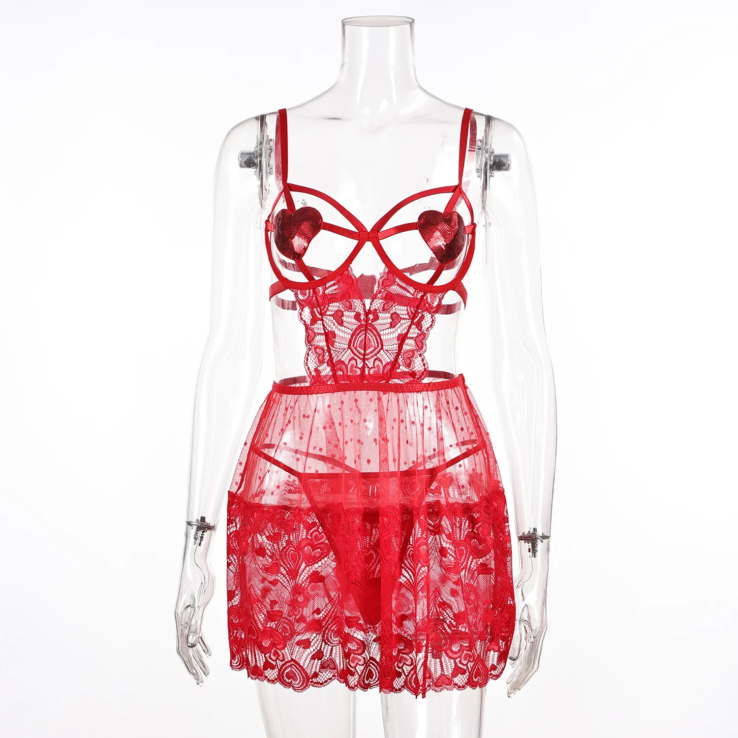 Sensual Lace Dress Hollow Out See Through Bilizna y Baby Dolls Call of the Night Short Open Costume