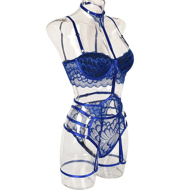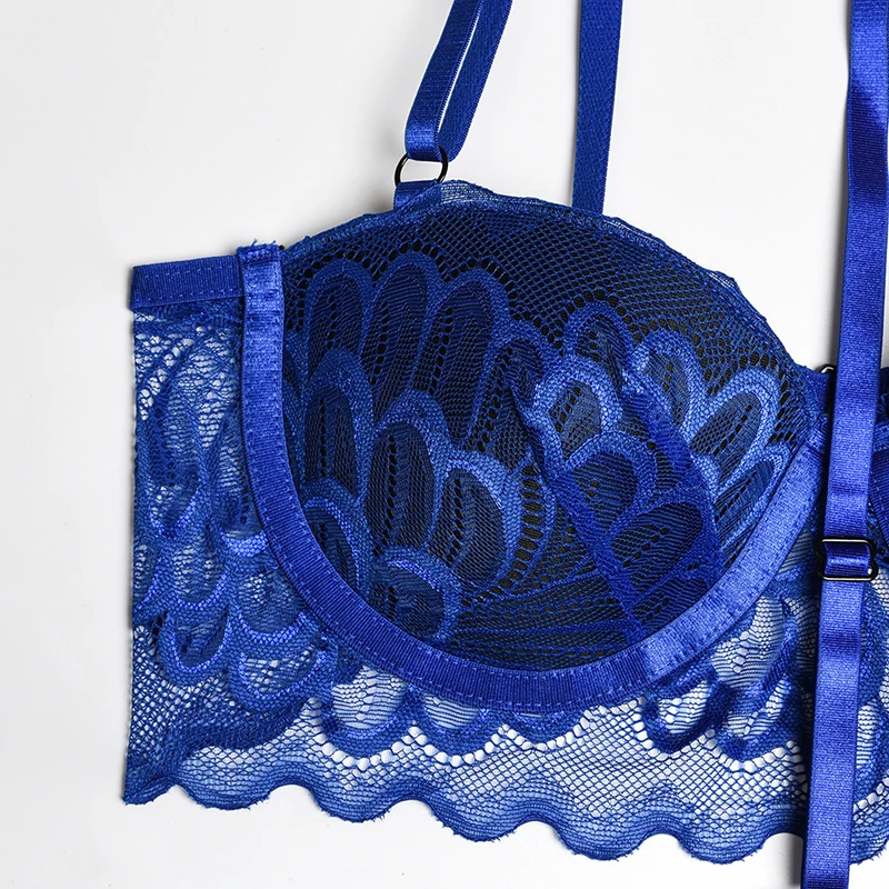 Ellolace Sensual Lingerie Woman Padded Underwear Set Garter Femme Lace Push Up Bras G-String Panties Underwear Women Sexy Outfit