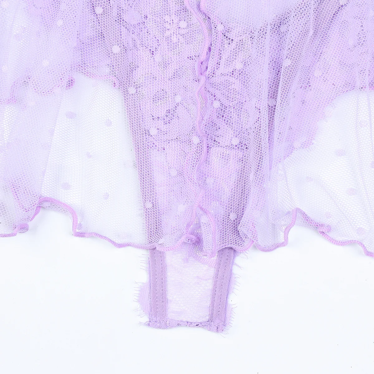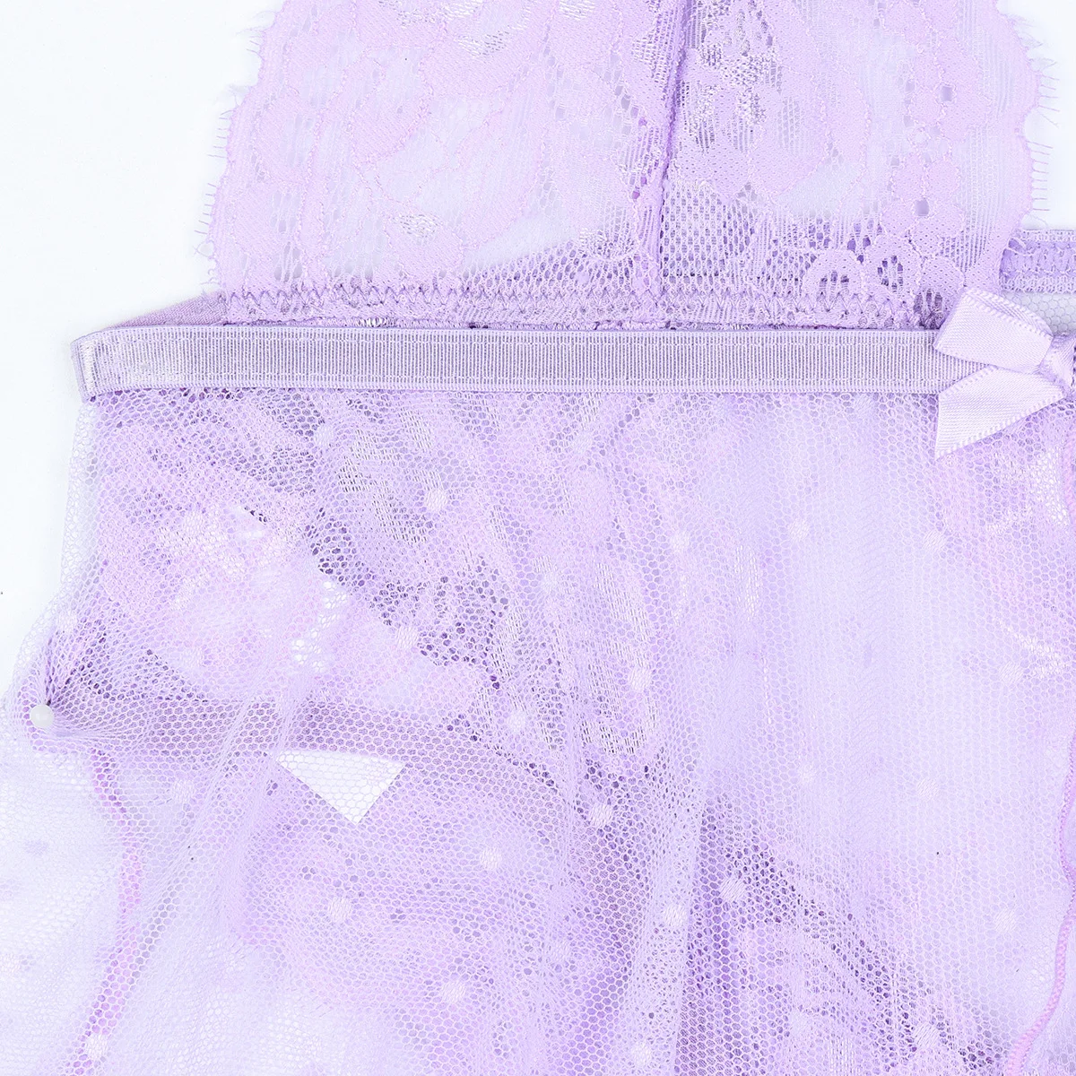 Ellolace Sexy Lingerie Fetish Babydoll Transparent Fantasy Clothing Lavender Erotic Costume Deep-V Sex Adult Doll Foul Tights