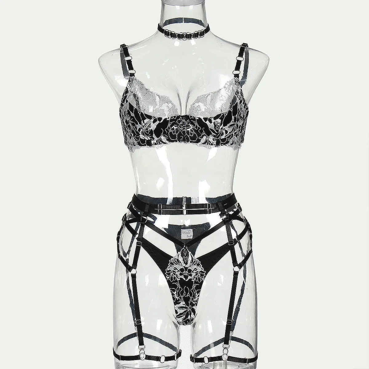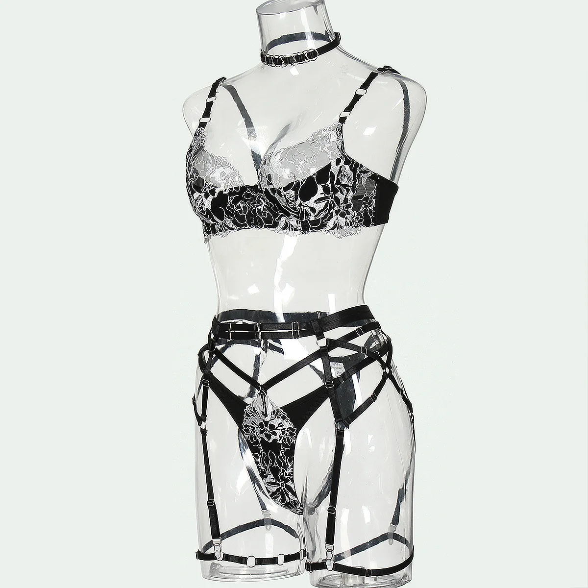 Ellolace Sexy Lingerie For Fine Women Lace Bra Kit Push Up Fantasy Underwear Erotic Transparent Cupless Sexy Outfit Intimate