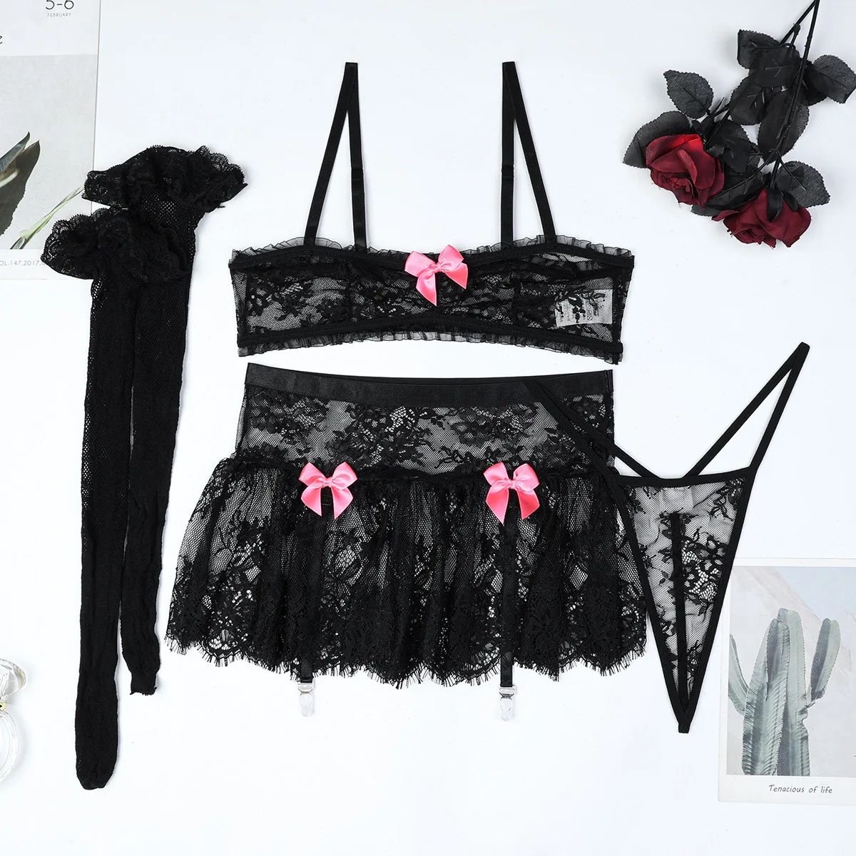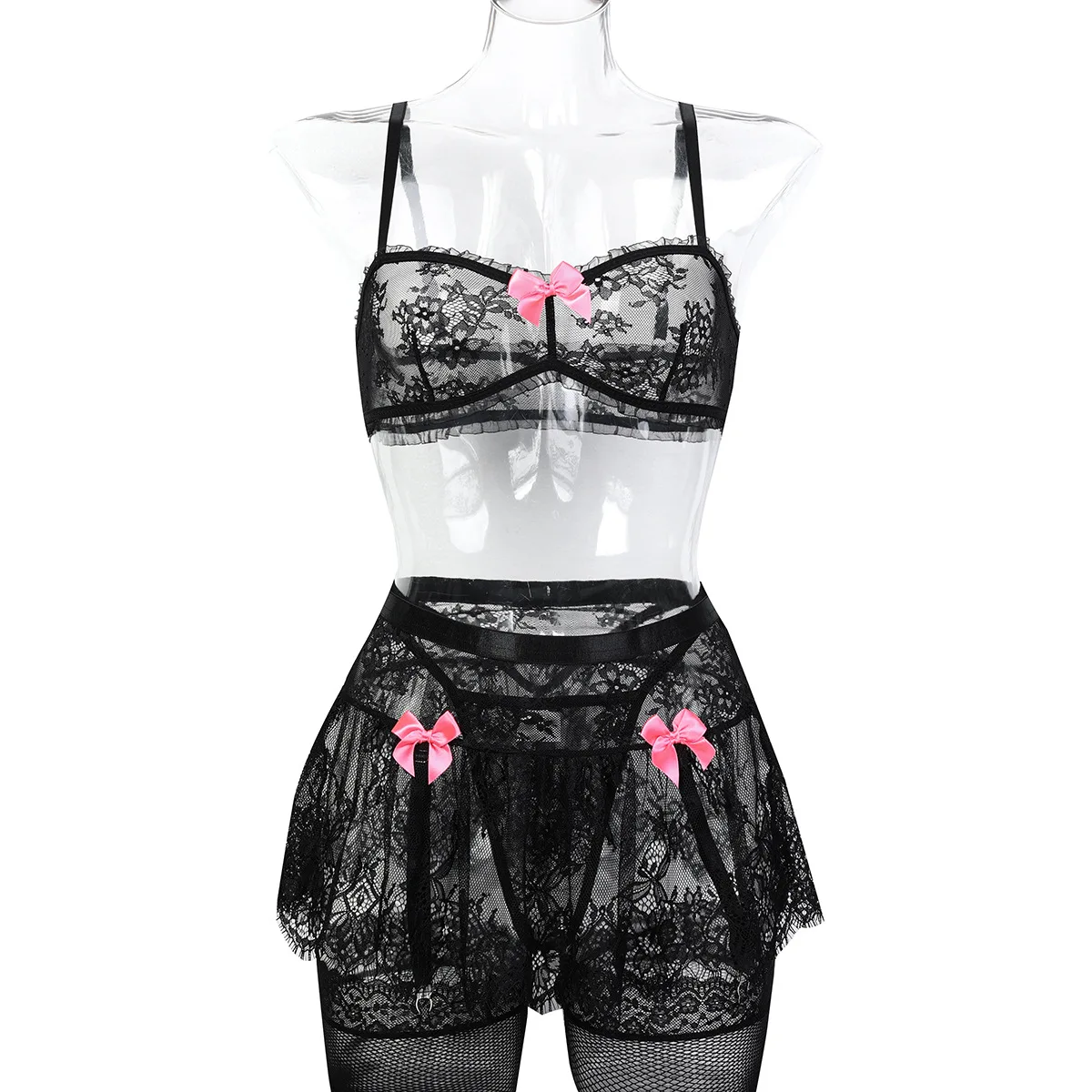 Ellolace Sexy Lingerie Pack Women Brazilian Transparent Sexy Lingеrie Set Fancy g-String Seductive Underwear Ensemble Bra Sets
