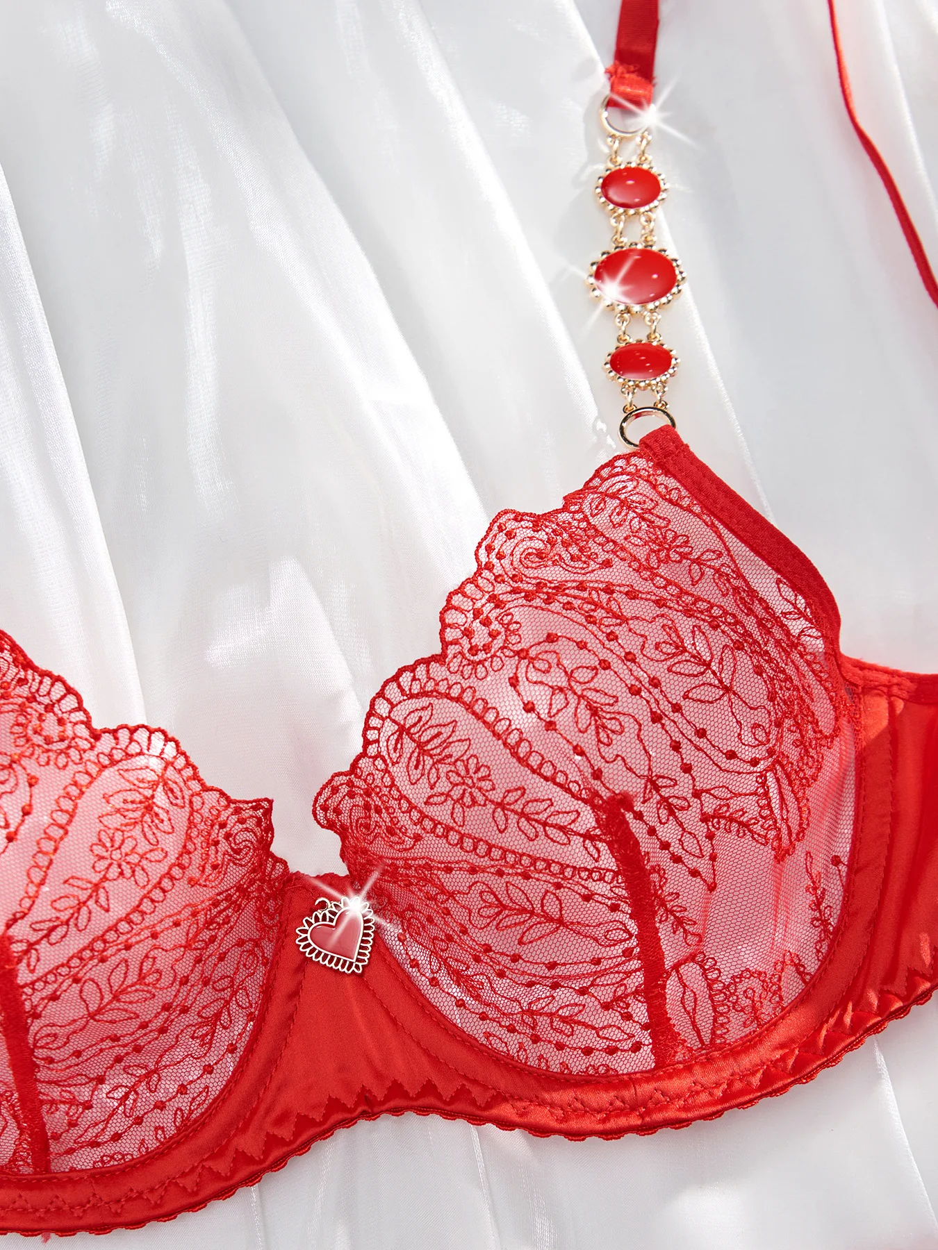 Ellolace Sexy Lingerie Pornographic Fancy Embroidery Lace Bra Luxury Suspenders Crotchless Thongs See-Through Erotic Bilizna Set