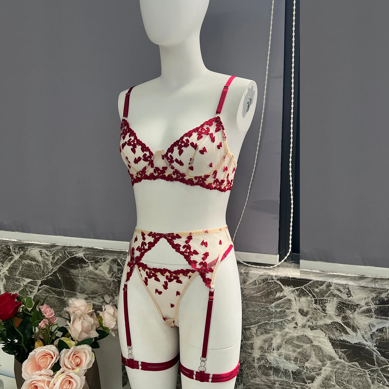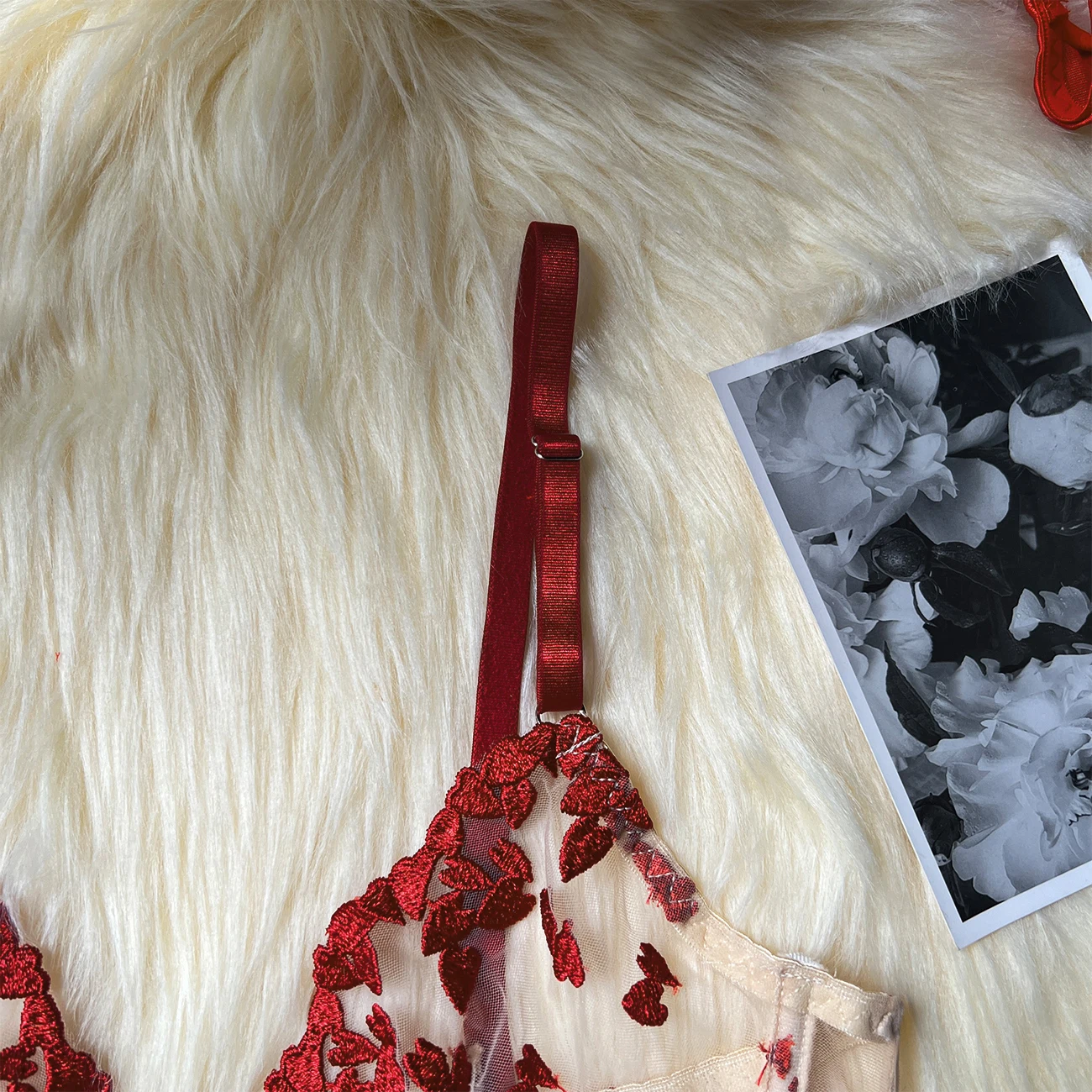 Ellolace Sexy Lingerie Uncensored Super Hot Lace Embroidery Love Underwear Sexy Suspenders Attractive See Through Bilizna Outfit