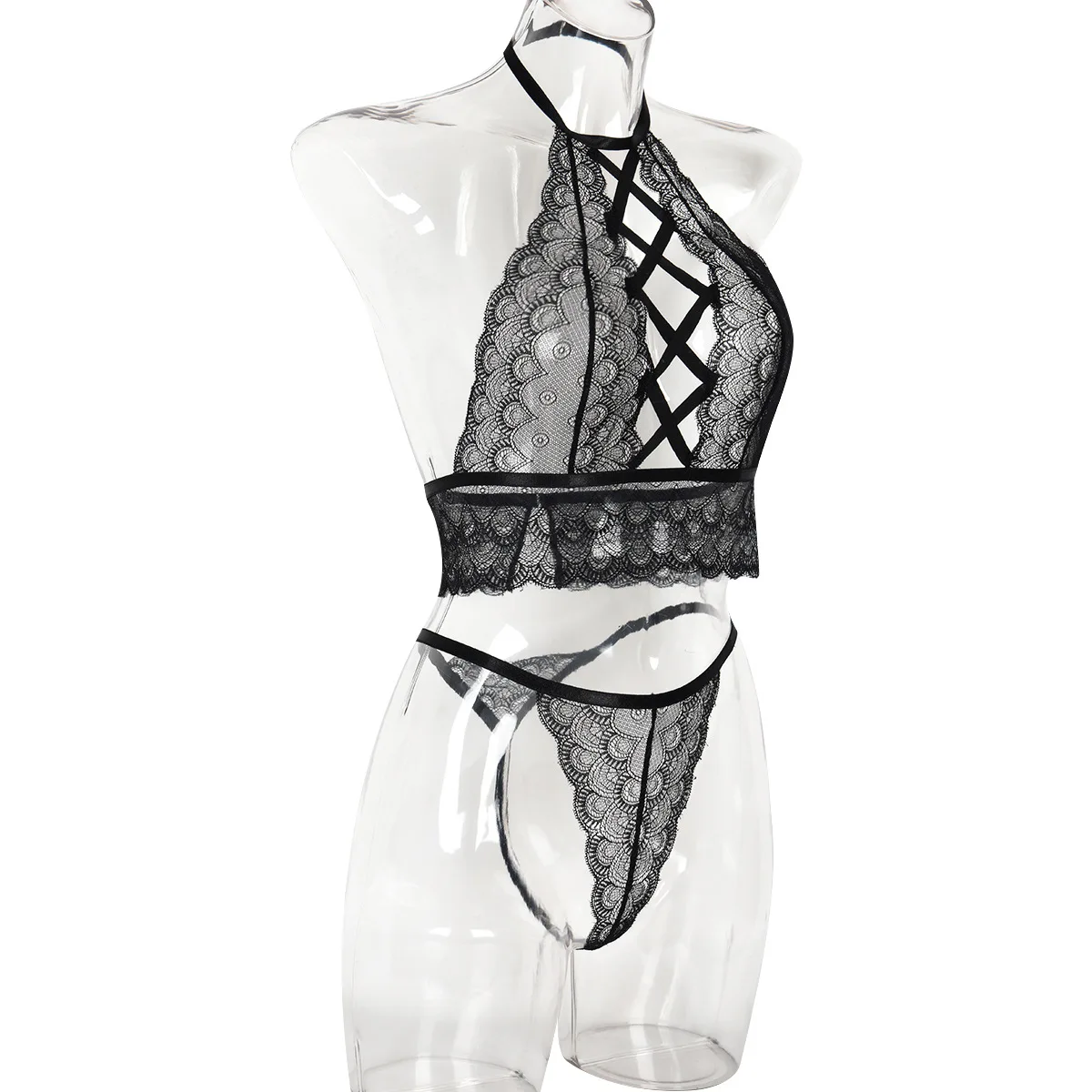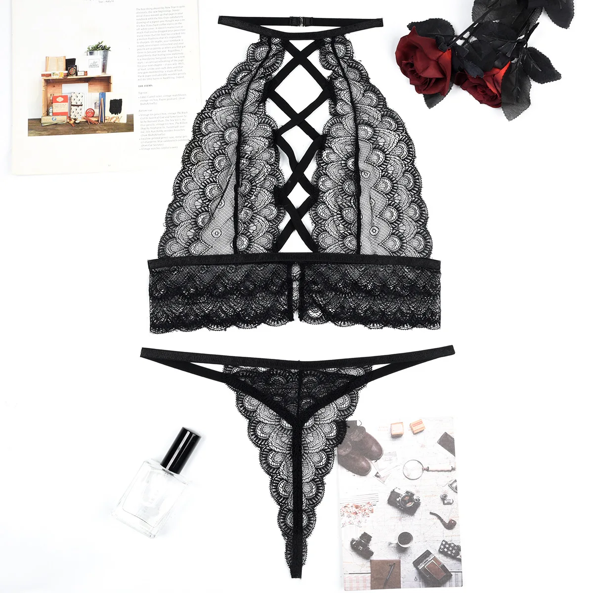 Ellolace Sexy Lingeries For Woman Set Erotic Porn Bilizna Sets Halter Bra See-Through Costume Fantasy Sex Suit Sensual Hot Thong