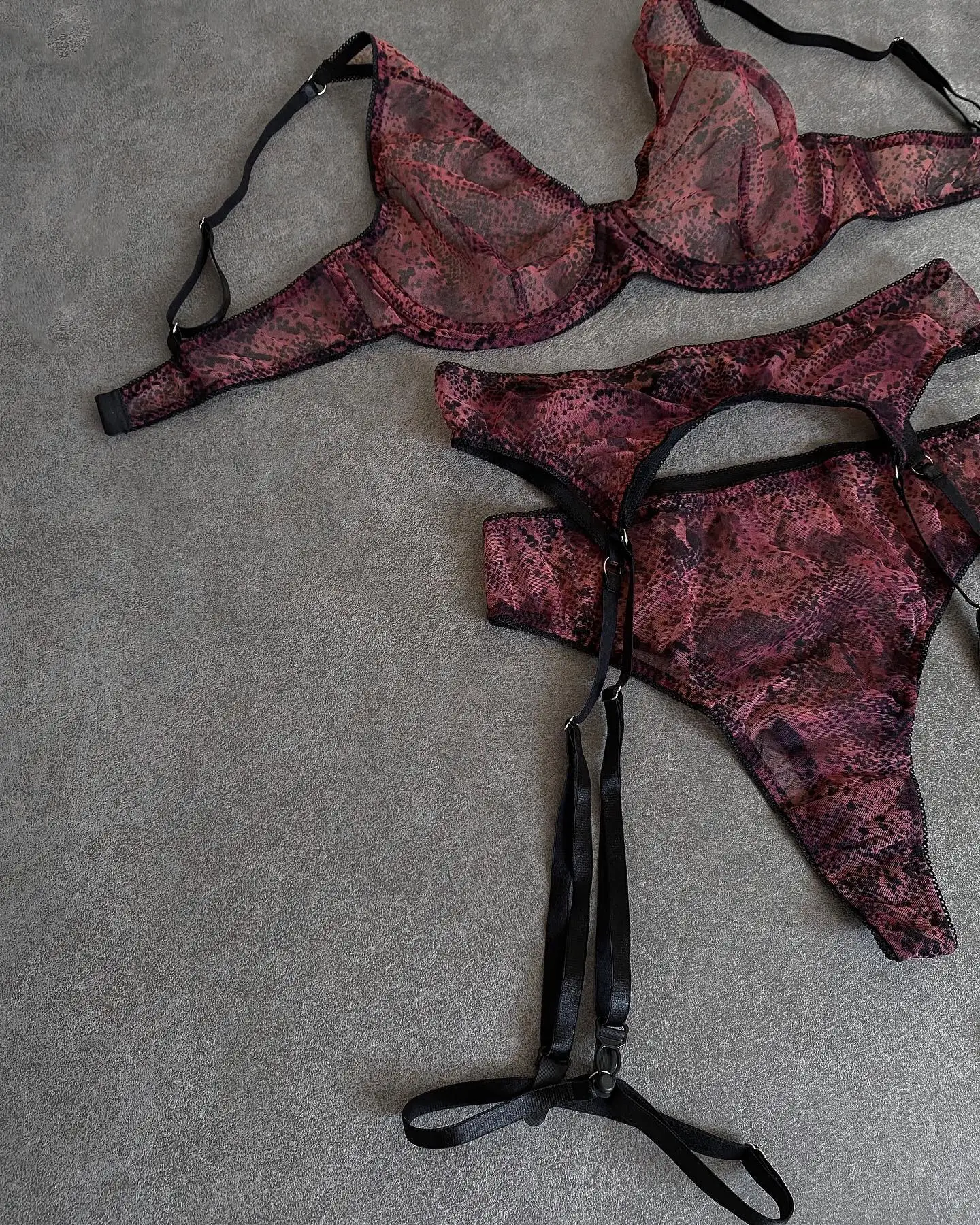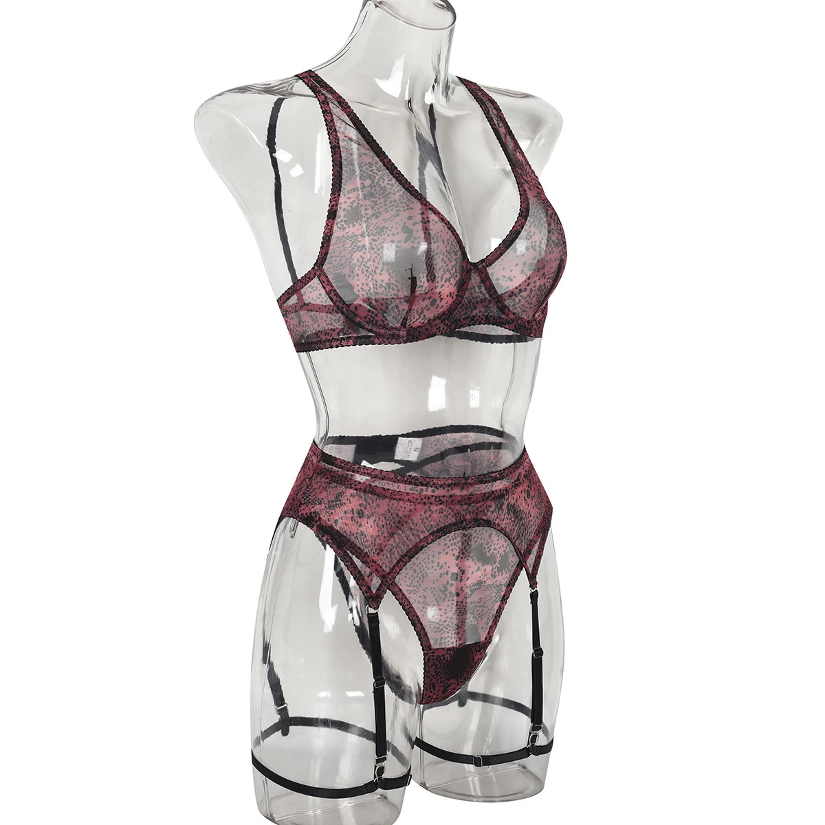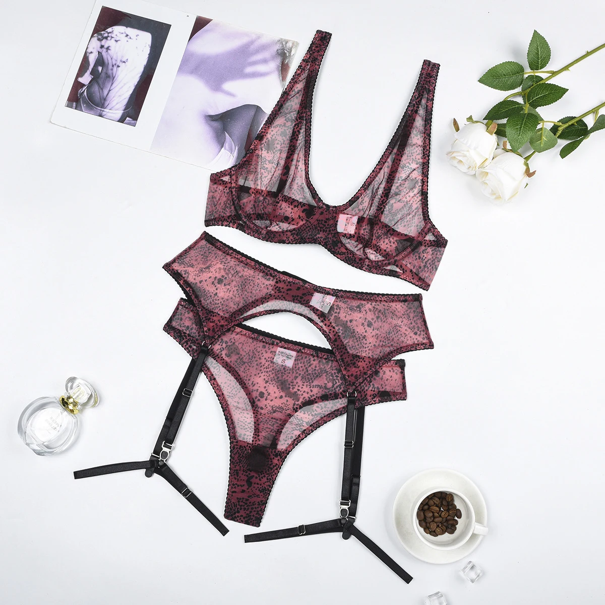 Snake Print Lingeries For Woman Sheer Lace Bilizna Garter Belt Set Hot Girl Sets Fancy Intimate