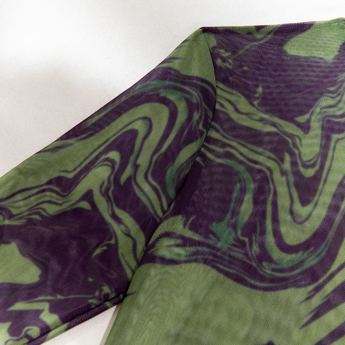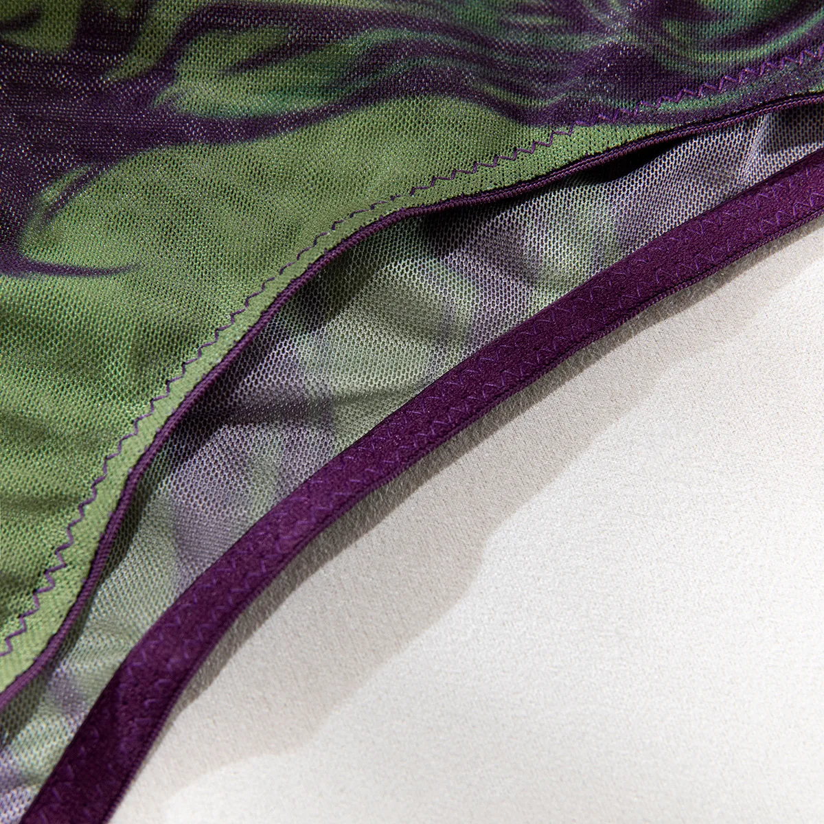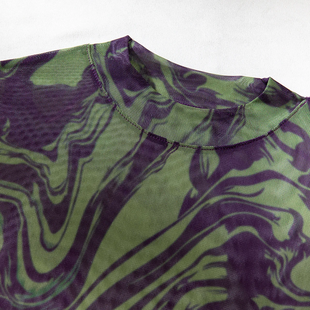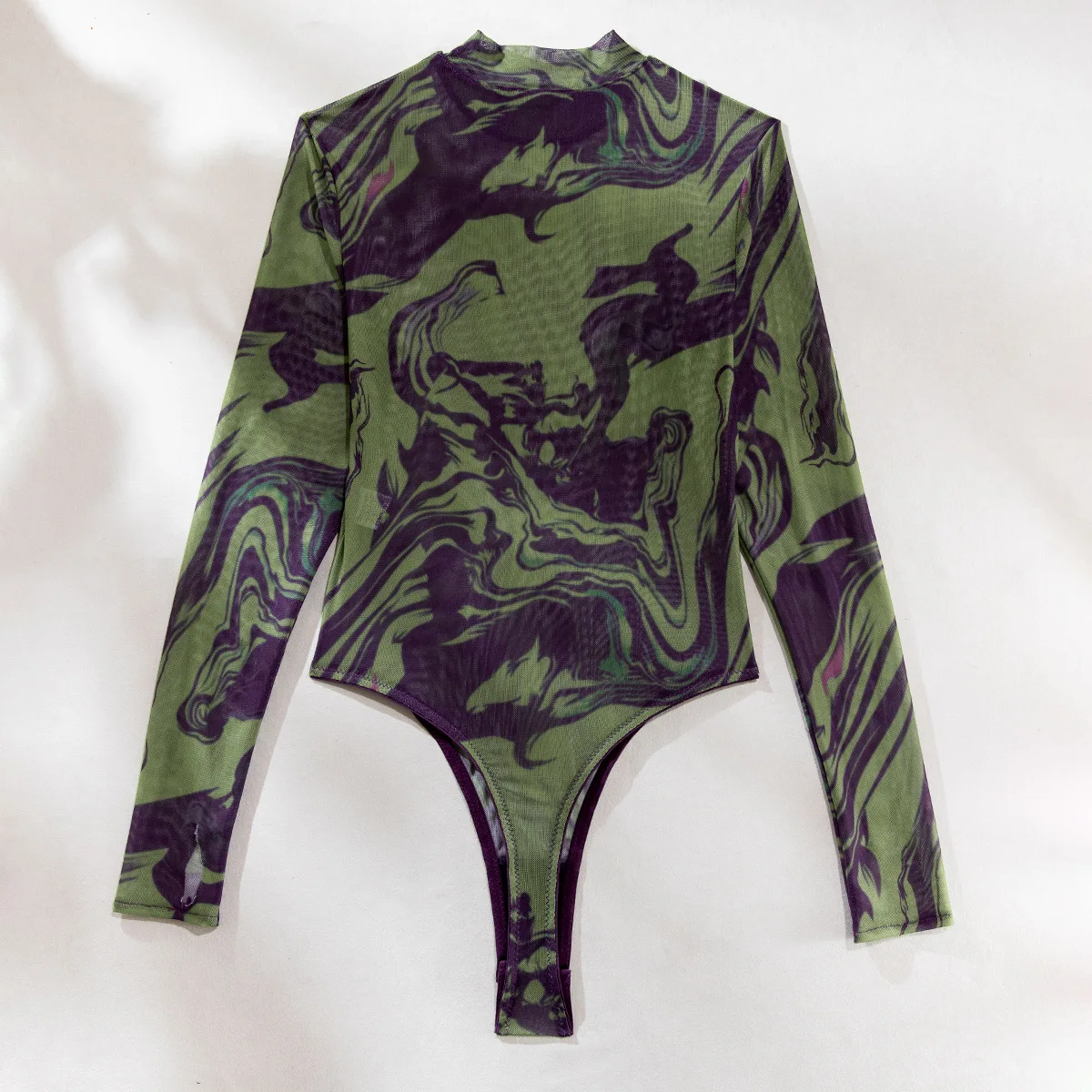 Ellolace Tie Dye Sexy Body Woman 2024 Long Sleeve One Piece Girl Body Seamless Sissy Tops Crotchless Tight High Cut Ladies Cloth