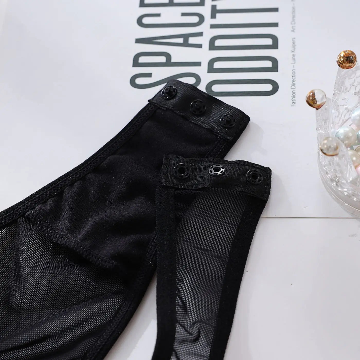 Ellolace Tight Fitting Lace Bodysuit Sexy See Through Erotic Body With Gloves Garter Night Club Outfit Sissy Crotchless Mesh Top