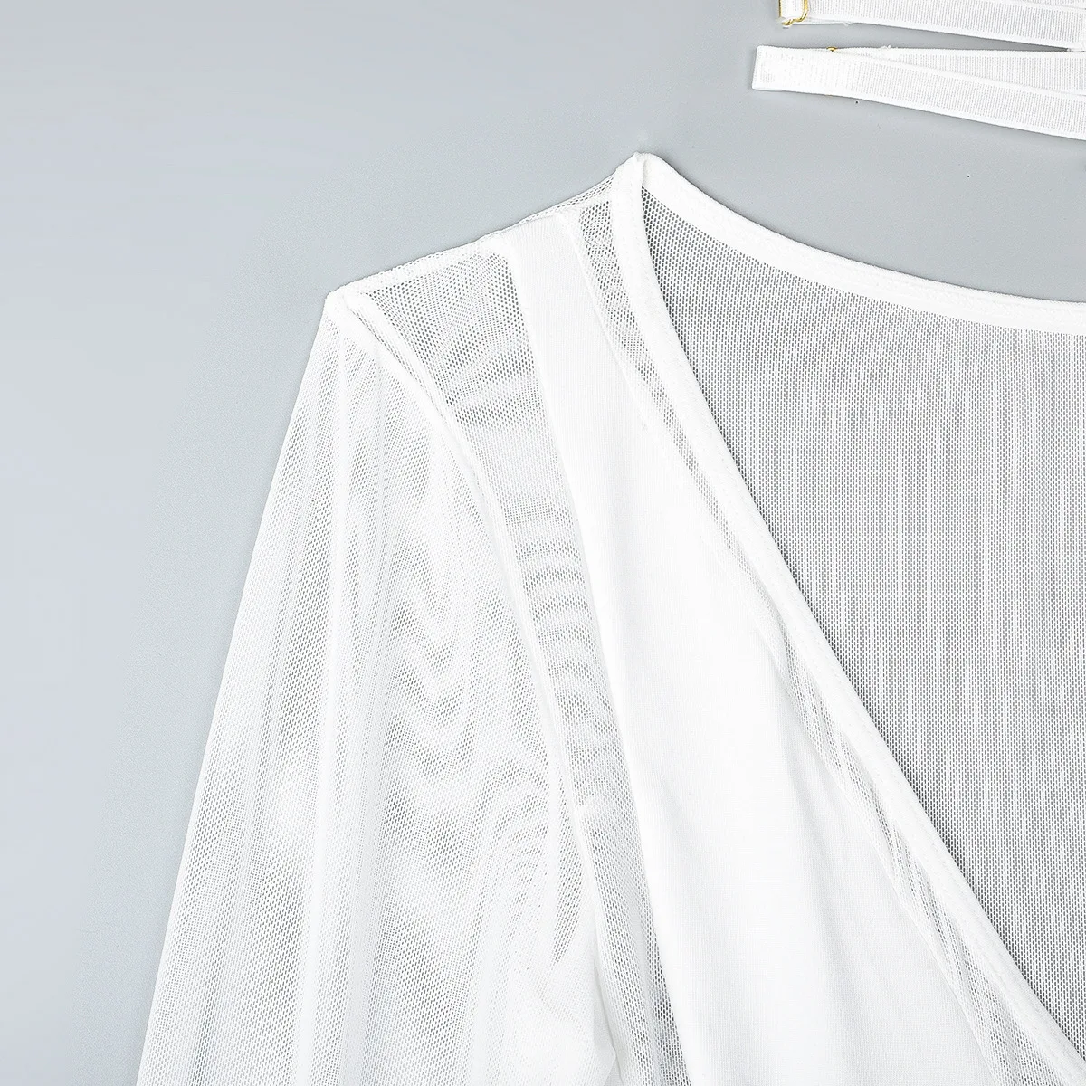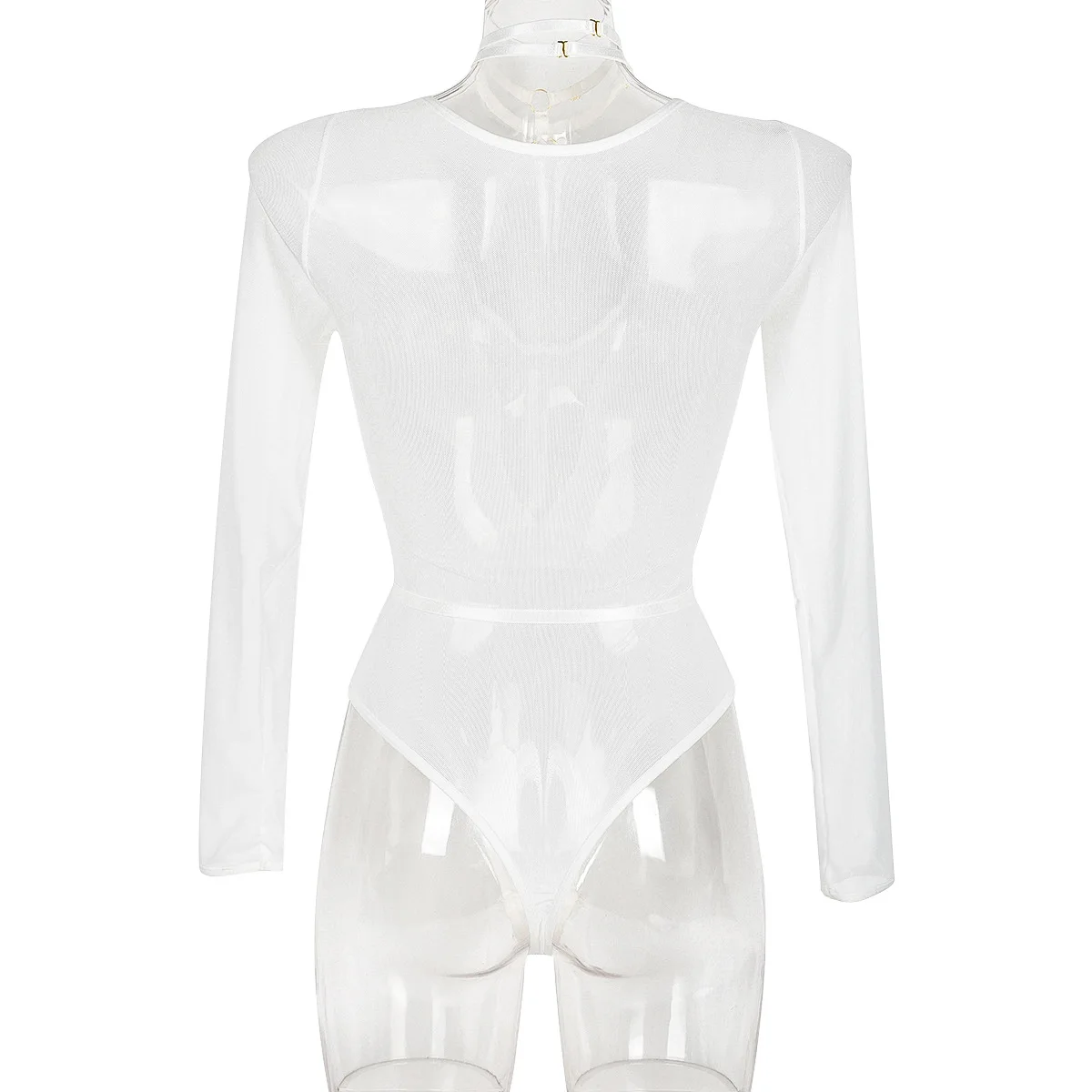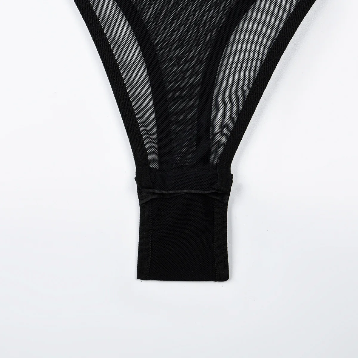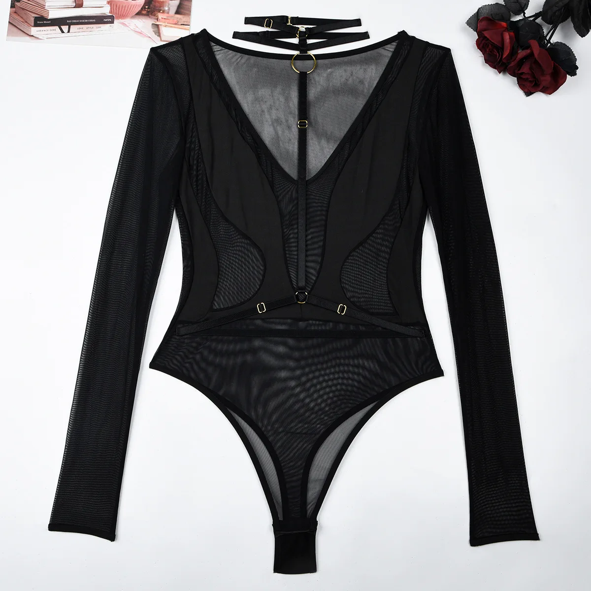 Ellolace Transparent Lace Bodysuit Long Sleeve Sexy Tops One Pieces Women's Bodice Youthful Sissy Halter Skin Mesh Black Body