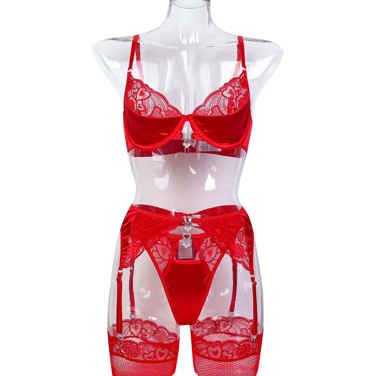 Ellolace Valentine Lingerie Red Lace Female Slip Underwear Silk Delicate Pendant Sexy Outfits For Woman Garter Intimate Stocking